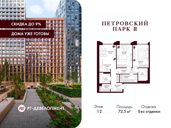 Дом сдан. Ключи в день покупки! В продаже 2-комнатная квартира площадью 60.50 м² с чистовой отделкой на 12 этаже 36 этажного дома в корпусе Сиена. ЖК Симфония 34 - концептуально новый жилой комплекс премиум-класса с подземной парковкой, состоит из четырех башен высотой 36 - 54 этажа. Квартиры сдаются с дизайнерской чистовой отделкой MR READY с встроенными кухнями и премиальной техникой. Приобретение квартиры с чистовой отделкой позволяет избежать лишних хлопот, ведь включает в себя установку мебели и бытовой техники на кухне, что является дополнительным бонусом. Высота потолков 3 - 6 метров, окна высотой до 2,6 м. Более 100 кладовых в подземной части ЖК и более 500 на этажах. Безопасность - Система контроля входа на территорию комплекса, биометрия - Система автоматического водяного пожаротушения и противопожарного водопровода, система пожарной вентиляции - Доступ на парковку при помощи системы распознавания автомобильных номеров, карточка для контроля доступа резидентов - Система видеонаблюдения - Круглосуточная связь через приложение, телефон, голосовые сообщения с охраной, консьержем, call-центр Расположение Пешком - 6 минут до метро "Дмитровская" - 15 минут до Тимирязевского парка На машине - 5 минут до Савеловского вокзала и Аэроэкспресса в Шереметьево - 10 минут до Москва-Сити и Садового кольца Благоустройство - 70% территории отведены под зеленые насаждения и ландшафтный дизайн - Приватный Японский сад - Детские площадки с зонированием по возрасту - Clubhouse для резидентов - Wellness & SPA - Зона для пикника, зона с гамаками - Центральное лобби, ресторан, коммерческие помещения - Дополнительный вход/выход на территорию комплекса Окружение - В 10 минутах от Symphony 34 находится дизайн-завод Flacon, где регулярно проходят культурно-образовательные и развлекательные мероприятия - Тимирязевский парк расположен в 850 м. Площадь парка 232 га - Рядом расположен парк "Дубки", площадью 16,5 га - В 15 минутах расположен Хлебозавод 9. Здесь находятся шоурумы брендов, кафе разных кухонь мира, образовательные проекты и площадки для мероприятийКомпания MR предлагает своим клиентам специальные условия приобретения квартир в рамках программ ипотечного кредитования от банков-партнеров.