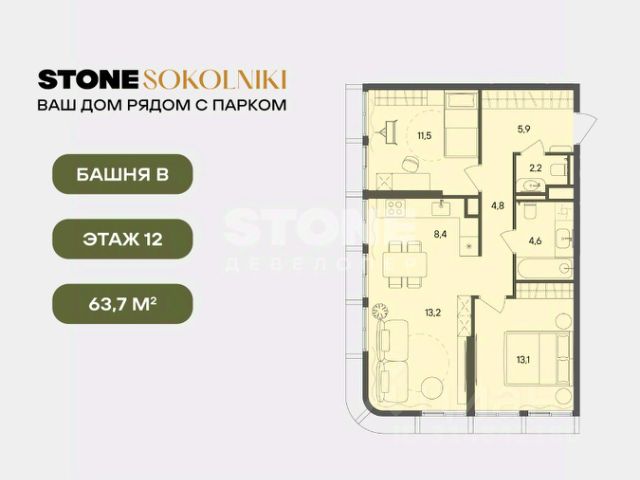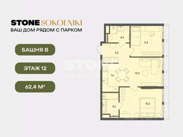 Старт продаж квартир в ЖК STONE SOKOLNIKI от девелопера STONE. В продаже просторная двуспальная квартира с кухней-гостиной и двумя спальнями для реализации любого дизайн-решения, идеально подходящая молодым парам, которые только планируют пополнение, а также небольшим семьям, где малыш уже подрастает. Современная архитектура проекта органично вписана в городскую среду. Концепция проекта разработана архитектурным бюро WALL Проект состоит из трех разновысотных башен высотой в 33, 28 и 24 этажа с чистой геометрией и увеличенной площадью остекления, которая позволит насладиться городской панорамой и видами на парк "Сокольники". Транспортная доступность - 10 мин. пешком до метро и БКЛ "Сокольники" и "Электрозаводская" - 12 мин. пешком до парка Сокольники - 10 мин. пешком до станции МЦД-3 "Митьково", которая позволит комфортно добираться в центр города и за его пределы Инфраструктура: В каждой входной группе предусмотрены помещения для временного хранения велосипедов, лапомойка, гостевой санузел, а также комната матери и ребенка. А колясочные появятся на каждом этаже - ведь это самое удобное решение для детей и их родителей. Планировочные решения: Планировки квартир в STONE Sokolniki создавались с учетом разнообразия современных сценариев жизни в городе. В проекте предусмотрены просторные кухни-гостиные, изолированные спальни с мастер-блоком, планировки для семей со взрослыми детьми, с двумя детьми разных возрастов. Благодаря грамотному зонированию квартир можно насладиться и временем с семьей, и уединением или, наоборот, устроить вечеринку вместе с друзьями. - Квартиры от 28 до 135 кв. м. Детский сад во дворе дома: Девелопер STONE осуществляет самостоятельный поиск оператора для детского сада, так как курирует наполнение проекта. На этапе финальной готовности будет выбран лучший оператор, отвечающий запросам качества и цены. Во всех своих проектах девелопер берет на себя ответственность за сдачу части помещений. Удобное хранение: В проекте STONE Sokolniki предусмотрена максимальная обеспеченность кладовыми. Хранения велосипедов в подземном паркинге возможно в зимний период, а летом будет организовано временное хранение на улице. Колясочные есть на каждом этаже всех трех жилых башен. - Колясочные на этаже - Кладовые для хранения Безопасная собственная территория дома, сим и паркинг: Внутри двора комфортно перемещаться пешком, все въезды в паркинг организованы по внешнему периметру. Велосипеды, самокаты и электросамокаты, детские беговелы и коляски - в приоритете, для всех колесных видов транспорта продуманы удобные маршруты движения и варианты хранения в разные сезоны. STONE - девелопер коммерческой и жилой недвижимости классов бизнес и премиум в Москве с 19-летним опытом. С 2022 года занимает лидирующую позицию на офисном рынке (рейтинг РБК). Сегодня в портфеле девелопера представлено 3 млн кв. м построенных, строящихся и проектируемых объектов, из которых более 1 млн кв. м находятся в стадии строительства. Компания имеет самый масштабный пр