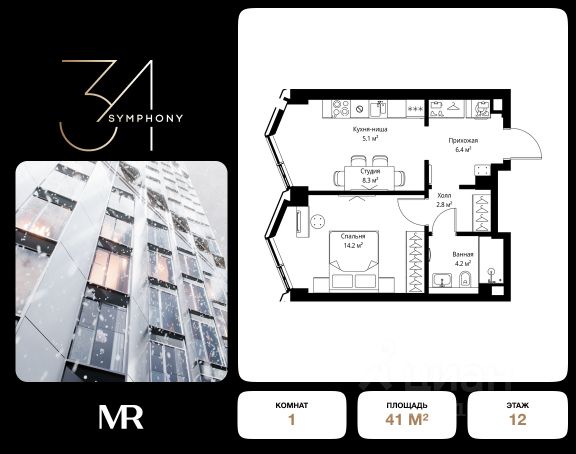 Дом сдан. Ключи в день покупки! В продаже 1-комнатная квартира площадью 41.10 м² с предчистовой отделкой на 12 этаже 49 этажного дома в корпусе Кристал. ЖК Симфония 34 - концептуально новый жилой комплекс премиум-класса с подземной парковкой, состоит из четырех башен высотой 36 - 54 этажа. Квартиры сдаются с базовой (предчистовой) отделкой MR BASE или дизайнерской чистовой отделкой MR READY. Высота потолков 3 - 6 метров, окна высотой до 2,6 м. Более 100 кладовых в подземной части ЖК и более 500 на этажах. Безопасность - Система контроля входа на территорию комплекса, биометрия - Система автоматического водяного пожаротушения и противопожарного водопровода, система пожарной вентиляции - Доступ на парковку при помощи системы распознавания автомобильных номеров, карточка для контроля доступа резидентов - Система видеонаблюдения - Круглосуточная связь через приложение, телефон, голосовые сообщения с охраной, консьержем, call-центр. Расположение Пешком - 6 минут до метро "Дмитровская" - 15 минут до Тимирязевского парка На машине - 5 минут до Савеловского вокзала и Аэроэкспресса в Шереметьево - 10 минут до Москва-Сити и Садового кольца Благоустройство - 70% территории отведены под зеленые насаждения и ландшафтный дизайн - Приватный Японский сад - Детские площадки с зонированием по возрасту - Clubhouse для резидентов - Wellness & SPA - Зона для пикника, зона с гамаками - Центральное лобби, ресторан, коммерческие помещения - Дополнительный вход/выход на территорию комплекса Окружение - В 10 минутах от Symphony 34 находится дизайн-завод Flacon, где регулярно проходят культурно-образовательные и развлекательные мероприятия - Тимирязевский парк расположен в 850 м. Площадь парка 232 га - Рядом расположен парк "Дубки", площадью 16,5 га. - В 15 минутах расположен Хлебозавод 9. Здесь находятся шоурумы брендов, кафе разных кухонь мира, образовательные проекты и площадки для мероприятиКомпания MR предлагает своим клиентам специальные условия приобретения квартир в рамках программ ипотечного кредитования от банков-партнеров.