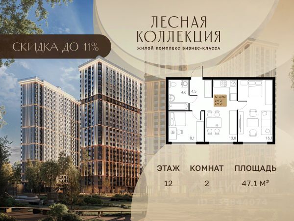 Выгода до 11%. Продажа напрямую от застройщика в жилом комплексе Лесная Коллекция! 1-комнатная квартира на 12-этаже, площадью 30.3-квм. Лесная Коллекция — это продуманный жилой комплекс для тех, кто хочет жить в комфортной городской среде и при этом быть рядом с природой. Удачное расположение, развитая инфраструктура и закрытая территория делают проект удобным для повседневной жизни. Удобная локация и транспорт • Быстрый выезд на Путилковское шоссе • Близость станции метро "Планерная" • Три железнодорожные станции рядом: Химки, Левобережная, Ховрино • Более 40 автобусных маршрутов Локация позволяет легко добираться как в центр города, так и в соседние районы. Территория и окружение • Соседство с престижным районом Куркино • Закрытая благоустроенная территория без сквозного движения • Пространства для прогулок и занятий спортом • Двор примыкает к лесному массиву • Архитектура комплекса выдержана в сдержанном, респектабельном стиле • До 70% окон ориентированы на парк Квартиры и планировки • Удобные и функциональные планировочные решения • Формат комфорт-класса по разумной цене • Максимум естественного света за счёт удачного расположения корпусов Инфраструктура внутри комплекса • Детский сад на территории на 140 мест • МФЦ для решения повседневных вопросов • Коммерческие помещения на первых этажах • Магазины, кафе и салоны красоты прямо в доме • Собственный паркинг рядом с домом Всё необходимое рядом • 78 муниципальных и 42 частных детских сада • 40 школ, включая гимназии и лицеи • 6 колледжей и техникумов • 5 вузов поблизости • Крупные торговые центры и рынки в удобной доступности О застройщике Проекты застройщика "Град Девелопмент" — это более 600 тыс. кв. м реализованной недвижимости, включая клубные форматы и жильё бизнес-класса. Компания известна качеством строительства и соблюдением сроков.