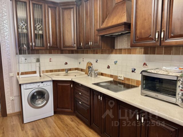 Кухня укомплектована мебелью из массива натурального дерева с качественной фурнитурой, есть посудомоечная машина, духовой шкаф расположен отдельно от варочной панели, что создаёт дополнительные удобства. Диваны на кухне выполнены из практичного материала, неприхотливого в эксплуатации. Если выдвинуть стол, то диваны раскладываются друг к другу, получается гостевое спальное место. Стол с чугунными ножками и дубовой столешницей. Пол в коридоре и на кухне из керамогранита.