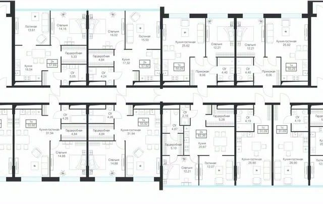 Продаются 2-комнатные апартаменты 58.52 кв.м. на 12-м этаже 20-этажного комплекса.