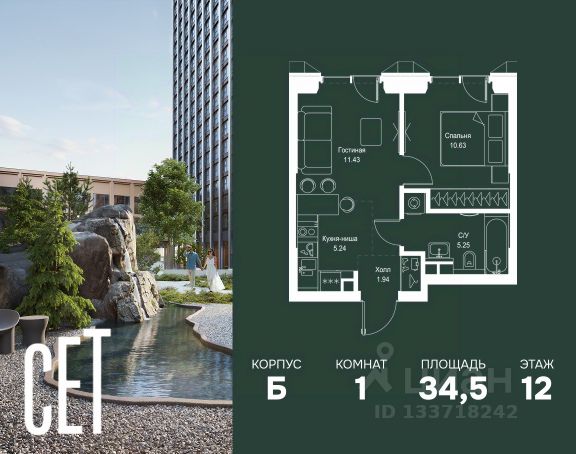 Прямая продажа от застройщика. В ЖК Сет продается 3-комнатная квартира площадью 132.84 м², расположенная в корпусе Б, на 12 этаже 59 этажного дома. Сет имеет стратегически выгодное расположение в ЗАО, в районе с большой историей и блестящим будущим: между природной зоной долины реки Сетунь и Кутузовским проспектом. В рамках возведения первой очереди предусмотрено три корпуса высотой 18, 45 и 59 этажей. На верхних этажах спроектированы общедоступные смотровые площадки с панорамным обзором на центр столицы. Преимущества проекта: • Функциональные планировочные решения • Контроль проникновения через входную дверь • Система управления освещением и температурой в квартире • Система защиты от протечек с функцией перекрытия воды • Вход в подъезд по биометрическим считывателям Face ID • Скоростные лифты • Двухуровневый подземный охраняемый паркинг на 495 машино-мест Застройка Сет включает в себя не только жилые корпуса, но и инфраструктурные объекты. Все необходимое для повседневного комфорта будет расположено в шаговой доступности: • Фитнес-Клуб с бассейном • Ведущая городская школа, детский сад и школа искусств • Центр культуры и досуга • Медицинский центр • Кафе и рестораны Расположение комплекса: Пешком: • Метро "Давыдково" - 17 минут • Парк "Долина реки Сетунь" - 3 минуты • Открытие новых станций метро в шаговой доступности в будущем Инфраструктура: Разнообразить свой день резиденты Веер смогут также проводя больше времени на свежем воздухе. Двор разделен на 4 зоны разных эмоций и действий, которые пересечены и соединены веерными прогулочными маршрутами: • Спортивная площадка устроена в глубине "Кленовой рощи" • В "Чайном домике" будет создан навес с утеплением для отдыха в любую погоду • Площадки для детей воплотятся в "Волшебный лес" с цветами, зеркалами и световым дизайном • "Центральная площадь" устроена у водного оазиса живописного пруда. На машине: • "Москва-Сити" - 15 минут • Садовое кольцо - 20 минут • ТЦ "Океания" - 8 минут • ТЦ "Времена года" - 13 минут • Сколково - 12 минут • Гребной канал - 17 минут Компания MR предлагает своим клиентам специальные условия приобретения квартир в рамках программ ипотечного кредитования от банков-партнеров.