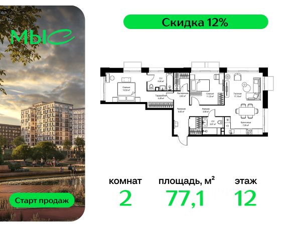 Прямая продажа от застройщика. Продаётся 2-комнатная квартира общей площадью 72.95 м² без отделки в премиальном жилом комплексе "МЫС" на 12-м этаже 14 этажного дома. Проект МЫС — это, прежде всего, идеальное место для семей. В рамках проекта построят государственную школу, два детских сада и дворец спорта площадью 20 000 м2 с термальным комплексом, выплывным бассейном, фитнес-залом, теннисными, сквош и падел кортами и секциями для детей. На территории площадью, сравнимой с тремя парками Зарядье, появятся кафе и рестораны, пруд с набережной, спортивные и детские площадки, скейт-парк, лыжные и веломаршруты. Расположение: - 2 минуты до скоростной трассы М1 и Минского шоссе; - 10 минут до МКАД; - 15 минут до МЦД Лесной Городок - 20 минут до делового центра "Москва-Сити"; - 28 минут до аэропорта "Внуково". Благоустройство: - велосипедные и лыжные маршруты; - собственная набережная и парк; - лаунж-зоны в окружении природы; - беседки у очага; - дворец спорта площадью 20 000 м²; - термальный комплекс с тремя бассейнами; - 4 теннисных и падел-корта; - 6 сквош-кортов; - многофункциональный спортзал; - скейт-парк; - просторная площадь для прогулок с фонтаном; - детский Клуб с творческими секциями; - гастро-доминанта; - кафе у пруда, рестораны, ритейл. Окружение - соседство с лесным фондом; - школа на 1250 мест и 2 детских сада на 350 и 255 мест; - Дубковский и Подушкинский леса, парк "Рассказовка", Мещерский парк. Действуют специальные условия при 100% оплате, подробности уточняйте у менеджера в офисе продаж.