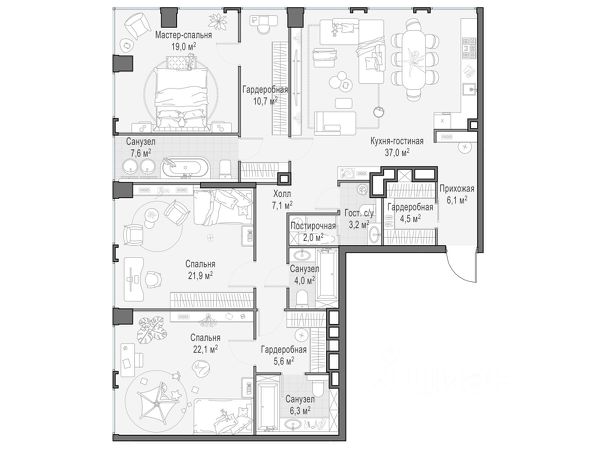 Просторная светлая квартира площадью 139,3 кв. м. Окна кухни-гостиной обращены в сторону Останкинской башни и исторического центра Москвы, а панорамное остекление улучшает видовые характеристики квартиры. Продуманная планировка позволяет разместить три спальни с отдельными санузлами и гардеробными. Окна квартиры выходят на восточную и северную стороны. Life Time - роскошный современный квартал на Пресне, в наиболее быстро растущем премиальном районе ЦАО. Его насыщенная инфраструктура и выгодное расположение дарят время для жизни. Вы больше не тратите его на дорогу или ожидание, при этом ни в чём себе не отказывая. На территории предусмотрено всё для комфортной жизни: • двор-парк площадью 1,8 гектара с прудом и фонтанами; • Clubhouse - инфраструктурный центр в отдельном здании с исчерпывающими возможностями для спорта, отдыха и досуга только для жителей; • спортивная инфраструктура на улице и в помещении, в том числе бассейн длиной 25 метров, хот-таб, хаммам, сауна, бьюти-зона; • клубная гостиная с террасой; • всё для развития и досуга детей любого возраста, в том числе детский сад и школа. Life Time находится в центре сложившегося премиального района, в окружении многочисленных парков. Удобная транспортная доступность и прямой выезд на Звенигородское шоссе позволяют без проблем добраться до Садового кольца и Москва-Сити. Архитектурный стиль квартала - роскошный минимализм. Дома десятилетиями будут выглядеть современно.