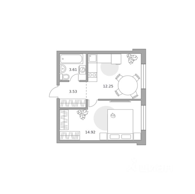 Продаётся студия 382, площадью 27,07 м², на 12 этаже в ЖК "Аникеевский" корпус 1.2. Стоимость — от 5944519 руб. Квартира без отделки, планировка угловая, окна во двор.
