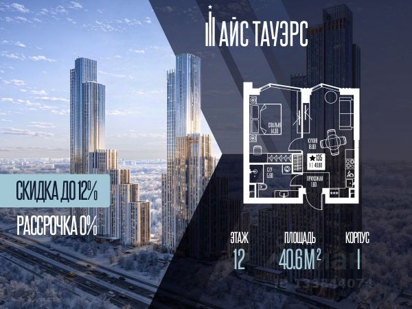 Выгода 12%, беспроцентная рассрочка от застройщика. Продается 1-комнатная квартира на 12 этаже, 40.6 кв.м. площади в жилом комплексе "Айс Тауэрс", который расположен в Западном административном округе Москвы. Архитектура комплекса отличается панорамным остеклением фасадов. Квартиры продаются с опциональной отделкой white box. В комплексе установлены системы видеонаблюдения, климат-контроля (бризеры) и элементы системы "умный дом". Территория и расположение На придомовой закрытой территории обустроены детские площадки, зоны для воркаута и места для отдыха. Комплекс граничит с особо охраняемой природной зоной, что обеспечивает доступ к прогулочным маршрутам. Инфраструктура комплекса • Комьюнити-центр с универсальными залами, коворкингом и библиотекой. • Помещения для детских занятий и мастер-классов. • Предусмотрены кабинеты для приема специалистов (стилистов, массажистов). В комплексе работают круглосуточная консьерж-служба и служба доставки (внутри комплекса). Доступны услуги парковки (valet) и помощи с багажом (беллмены). Для повседневного удобства предусмотрены: • Колясочные и велосипедные хранилища. • Душевые для домашних животных и груминг. • Мобильное приложение для управления сервисами.