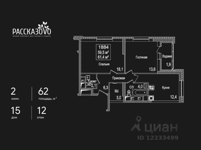 Открытие продаж готовых квартир! Продается однокомнатная квартира без отделки в городе-парке "Переделкино Ближнее". Общая площадь квартиры - 36,4 кв. м, этаж 12 из 17. Тип дома - монолитный. Дом сдан! Корпус 1 состоит из 6 секций. Город-парк "Переделкино Ближнее" расположен в 8 км по Боровскому шоссе от МКАД на территории Новой Москвы. ТРАНСПОРТНАЯ ДОСТУПНОСТЬ: - в пешей доступности находятся метро "Рассказовка" и МЦД-4 "Мичуринец" - 14 минут на машине до станции метро "Филатов Луг" Сокольнической линии - 15 минут на машине до станции метро "Саларьево" Сокольнической линии - 35 минут на метро до центра Москвы ПРЕИМУЩЕСТВА 1 КОРПУСА: - квартиры у леса - высота потолков - от 3 метров - входные группы с безбарьерным доступом - в каждой секции - 2 лифта: 1 пассажирский, 1 грузовой - колясочные на 1 этаже - коммерческие помещения на 1 этаже - на -1 этаже - кладовые помещения - огороженный двор без машин - обеспеченность машино-местами: гостевой и многоуровневый паркинги рядом с домом - 5-10 минут пешком до школы и детского сада 17 фаза строительства уникальна своим расположением - рядом с Ульяновским лесопарком, парком "Рассказовка" и Большим Федосьинским прудом. ВНУТРЕННЕЕ БЛАГОУСТРОЙСТВО: В рамках 17 фазы для жителей предусмотрено создание пространства свободного от машин - благоустроенные огороженные дворы с современными детскими и спортивными площадками, разделенными на зоны по возрастам. РАЗВИТАЯ ИНФРАСТРУКТУРА В ОКРУЖЕНИИ: - открыты 2 школы на 3750 мест и строится 1 школа на 2100 мест - детский сад 1788 (всего в проекте 7 детских садов) - торговый центр "Сказка" - кафе, продуктовые магазины, аптеки, фитнес-центры, салоны красоты и пр. - в пешей доступности расположен благоустроенный парк "Рассказовка"