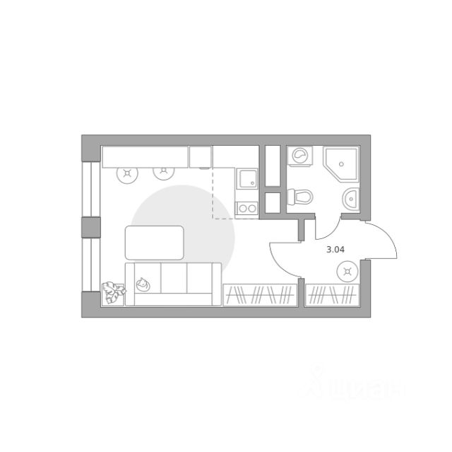 Продаётся студия 566, площадью 26,53 м², на 12 этаже в ЖК "Пехра" корпус 8. Стоимость — от 6392771 руб. Квартира с отделкой, планировка односторонняя, окна во двор.