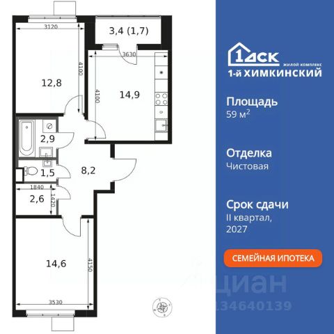БЕЗ ПЕРВОНАЧАЛЬНОГО ВЗНОСА! • ИПОТЕКА 10% ДЛЯ ВСЕХ БЕЗ НАЦЕНОК • ДОСТУПНО ПО СЕМЕЙНОЙ ИПОТЕКЕ Прямая продажа от застройщика! Жилой Комплекс класса Комфорт. Продаётся 1-к квартира номер 445 общей площадью 32.2 кв.м. на 12-м этаже 17 этажного здания. Чистовая отделка. Цена с учётом скидки. Особенности квартиры: - Линейная планировка - максимальная функциональность и удобство. - Линейная кухня - функциональность и практичность в одном решении. - Гардеробная - удобство для хранения и организации вещей. - Лоджия - уютное место для отдыха и тишины. Информация о комплексе: Квартал класса комфорт плюс, где современное городское пространство граничит с удивительной природой вокруг. 1-й Химкинский расположен на территории в 102 га и органично вписан в природное окружение Химкинского леса и канала им. Москвы. В проекте предусмотрена богатая коммерческая инфраструктура с собственным торговым центром, общеобразовательные учреждения и социальные объекты. Изюминкой жилого комплекса будут спортивно-оздоровительный комплекс с термами и SPA и семейный парк развлечений. Транспортная доступность: ЖК "1-й Химкинский" дает возможность выбрать любой способ передвижения как до города, так и до самых разных объектов, которые могут представлять интерес для его жителей. Не важно, какой способ передвижения вы предпочитаете, успевать всегда и везде можно вне зависимости от выбора транспорта. - 8 мин. пешком (800 м) до остановки "Золотая Арка" -10 мин пешком (1 км) до остановки "Поворот на Ивакино" Внутренняя инфраструктура: - Безопасность: закрытые дворы без машин, безбарьерная среда и сквозные подъезды, камеры на детских площадках с возможностью трансляции на смартфоне - Идеальный отдых в кругу семьи: семейный парк развлечений на территории, торговый центр (2-х этажный) общей площадью более 8 тыс. кв. м с фудкортом - Образование: 3 детских сада и современная муниципальная школа на 2450 мест - Спортивная среда: закольцованный веломаршрут с навигацией, спортивный комплекс с термами, закрытый тренажерный зал и зоны ворк-аута - Социальные объекты: поликлиника со станцией скорой помощи, пожарное депо - Подземный паркинг и кладовые помещения на -1 этаже, станция техобслуживания и автомойка на территории
