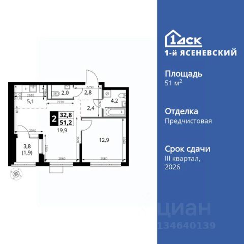 Прямая продажа от застройщика! Жилой Комплекс класса Комфорт Плюс. Продаётся 2-к квартира номер 527 общей площадью 51.2 кв.м. на 12-м этаже 18 этажного здания. Отделка Whitebox. Цена с учётом скидки. Особенности квартиры: - Квартиры рядом с метро - м. Корниловская 9 мин пешком - 63 га лесопарка за окнами - Школа c it-кластером и бассейном. 2 детских сада - Линейная планировка - максимальная функциональность и удобство. - Увеличенное количество окон - дополнительное освещение и свежий воздух. - Просторная ванная - место для расслабления и уединения. - Гостевой санузел - комфорт и удобство для ваших гостей. - Евроформат - просторное и удобное жилье с отличной планировкой. - Место для игры/занятия спортом - идеальное пространство для активных детей. - Можно оборудовать рабочее место - комфорт для работы и учёбы. - Возможность добавить спальное место - дополнительный комфорт для гостей. - Ниша под шкаф - компактное и удобное место для вещей. - Просторная лоджия - идеальное место для уютных вечеров. Квартира с предчистовой отделкой (White box). Вам не придется заниматься черновыми и трудоёмкими работы, а чистовую отделку и дизайн - сделайте на свой вкус. Информация о комплексе: В жилом комплексе комфорт-плюс класса "1-го Ясеневского" доступны преимущества двух стилей жизни. Ведь в пешей доступности метро, школа с 25-метровым бассейном и IT-кластером и при этом целых 63 га благоустроенного Троицкого лесопарка под окнами, где так приятно дышать свежим воздухом и слушать пение птиц. Собственная закрытая территория "1-го Ясеневского" представляет собой уютный оазис. Здесь и зеленый освещенный бульвар для прогулок, система велодорожек, маленькая городская площадь, кафе, пекарни и кофе поинты. А еще дворы без машин и многоэтажная парковка. Изюминка территории - фруктовые деревья во дворах и городские сады. "1-й Ясеневский" - всего в 1 км от МКАД, на территории новой Москвы. Жилой комплекс, где есть все необходимое для современного человека. Транспортная доступность: До метро "Корниловская" - 12 минут пешком До метро "Тютчевская" - 25 минут пешком До метро "Теплый стан" - 10 минут на транспорте До метро "Ольховая" - 30 минут на общественном транспорте Личный автотранспорт: Выезд на Калужское шоссе - 500 м МКАД - 1 км Внутренняя инфраструктура: ЖК "1-й Ясеневский" можно назвать идеальным местом для жизни семьи с детьми. Здесь буквально за домом находится Троицкий лесопарк - излюбленное место прогулок молодых родителей. А во внутренних дворах под детские площадки выделены специальные зоны. Они оборудованы всем, что нужно для счастливого детства: современными и максимально безопасными качелями, песочницами и лазалками. Оборудование и игровые сценарии на детских площадках спроектированы вместе с командой детских психологов для правильного развития ребенка и для повышения их интереса. Также рядом с домом два детских садика, один из которых уже построен и школа на 1100 мест. Школу по праву можно назвать образцовым