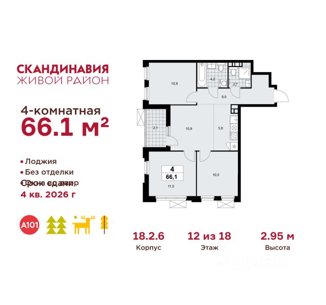 В жилом комплексе, расположенном по соседству с ландшафтным парком "Южное Бутово", продается 2-комнатная квартира площадью 59.80 кв. м. с отделкой. Квартира расположена на 12 этаже 1 корпуса в жилом квартале комфорт-класса "Новые Смыслы" (ГК Unikey/Юникей). Доступная и удобная локация: - 10 минут ходьбы до станции метро "Потапово". - 25 минут ходьбы до станции метро "Бунинская аллея". - 15 минут на авто до Калужского шоссе. - 20 минут на авто до МКАД. - 30 минут на машине до аэропортов "Внуково" и "Остафьево". Продуманный архитектурный проект: - Разноуровневые секции с эстетичные башнями и контрастными цветовыми сочетаниями, напоминающими башни в Сити. - Сказочные виды из окон на современный район столицы. - Авторские планировки с потолками в 3 метра, просторными кухнями-гостиными и мастер-спальнями. - Комфортные бесплатные общественные пространства. - Подземный паркинг с прямым доступом на лифте. - Настоящий лес с живописными пейзажами и прудом прямо во дворе. Расположение Комплекс "Новые Смыслы" расположится в благоприятном районе Новой Москвы - Коммунарка. Зеленое окружение, богатая инфраструктура развивающегося района - все это сформирует особое пространство для комфортной жизни, наполненной смыслом. 10 минут на велосипеде - и вы в ландшафтном парке "Южное Бутово" или сквере у Потаповских прудов. Чуть дальше расположен Бутовский лесопарк. В окружении "Новых Смыслов" вы найдете все необходимые социальные объекты. В двух шагах от дома находится 5 школ, более десятка детских садов, секции для занятий малышей и подростков, частные клиники, супермаркеты, рестораны, студии красоты и фитнес-центры. За 12 минут на авто вы доберетесь до ледовой арены, комплекса "Спорт Станция" и спа-центра "Termoland". Внутренняя инфраструктура Для жителей "Новых Смыслов" будут созданы бесплатные общественные пространства: - Деловая гостиная с эстетичным коворкингом и переговорными. - Гостиная для души и тела, включающая фитнес-зону с тренажерами и пространства для стретчинга, йоги и медитаций. - Гостиная детства, где дети будут играть и развиваться под присмотром тьютора. - Кино-гостиная - кинотеатр на крыше одного из домов, предлагающий разнообразную программу. - Прачечная, работающая только для жильцов. Вместе с корпусами комплекса на территории запланировано строительство детского сада. На первых этажах корпусов откроются кофейни, пекарни, сервисы быта и пункты доставки. Благоустройство Чтобы отдохнуть от суеты города, достаточно выйти во двор: здесь раскинулся настоящий лес с живописными пейзажами. В тени деревьев жителей ждут пруд с мостиком и беседкой на берегу, тихие прогулочные аллеи, спортивная площадка и зоны для занятий йогой и бадминтоном на свежем воздухе. Юных жителей порадуют современные детские площадки, жукарий и специальное пространство для подвижных игр. Безопасность на территории гарантирована: двор огорожен от машин и оснащен камерами видеонаблюдения.