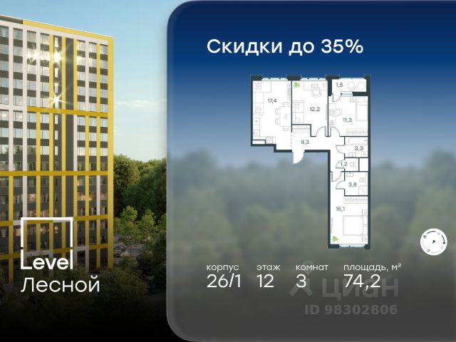 Прямая продажа от застройщика. Продаётся 2-комнатная квартира общей площадью 74.20 м² без отделки в ЖК City Вау, квартале Pacific, на 12-м этаже 59 этажного дома. Концепция жилого комплекса City Вау - настоящий город в городе с отлично развитой инфраструктурой и собственной благоустроенной набережной. На территории жилого комплекса расположено пять кварталов - Atlantic, Pacific, Indian, North, Cliff. Жилой квартал City Вау отличается оригинальной концепцией и выделяется среди других проектов такими характеристиками как: - Архитектура, - Виды из окон, - Природное окружение, вызывая гордость у жителей и восхищение у прохожих. Вся жизнь района Покровское-Стрешнево строится вокруг водных объектов: - Пойма реки Сходни с уникальной экосистемой, - Речка Химка и Химкинское водохранилище, - Москва-река, - Канал имени Москвы. Кругом вода, и местные с удовольствием этим пользуются. А сразу за рекой - центр водного спорта в Строгино с вейк-парком и яхт-клубами. Помимо воды, здесь очень много зелени: - Рядом Сходненский ковш памятник природы, естественный амфитеатр глубиной 40 метров; - Парк при усадьбе Братцево с фруктовым садом; - Дубовая роща "Маяк", - Алешкинский лес; - Лесопарк Покровское-Стрешнево с пляжами и бобрами. Главные транспортные артерии района: - Волоколамское шоссе, - Таганско-Краснопресненская линия метро и МЦД-2. Всего за 20 минут можно добраться до центра на машине или метро, а МЦД связывает ЖК City Вау с северными, восточными и юго-восточными районами. Компания MR предлагает своим клиентам специальные условия приобретения квартир в рамках программ ипотечного кредитования от банков-партнеров.