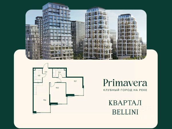 Клубный город на реке Primavera — это респектабельный проект премиум-класса на первой береговой линии Москвы-реки в экологически безупречном районе — Покровское-Стрешнево. Под панорамными окнами квартир расположился собственный экопарк, площадью 12 гектаров с сетью прогулочных дорожек, оборудованный детскими и спортивными площадками, а за ним набережная с собственным пляжем и зонами отдыха. Клубный город на реке Primavera предлагает впечатляющий выбор планировок для любого жизненного сценария: от просторных однокомнатных квартир до пентхаусов и квартир с видовыми террасами или патио. Выбирайте из 120 вариантов эргономичных планировок стандартного и евроформата. В проекте доступны квартиры площадью от 40 до 209 м², в каждой из которых открываются непревзойденные виды на реку, а угол обзора составляет 270 градусов. Из дизайнерских лобби открывается панорамный обзор на зеленый благоустроенный двор. Статусное мебелирование, потолки высотой 6 м и комфортная лаунж-зона отсылают к стилистике высококлассных пятизвездочных отелей. В Primavera есть все, что может предложить мегаполис, здесь все сосредоточено вокруг вас и настроено на ваши желания: - Всестороннее детское развитие в паре шагов от дома: 4 школы, 8 детских садов, развивающие центры с кружками и секциями. - Комфорт мегаполиса на расстоянии приятной прогулки: супермаркеты, кафе, рестораны с верандами на крыше, салоны красоты, аптеки, компании сферы услуг, многофункциональный центр для шоппинга и развлечений. - Умный дом: автоматизированное бесконтактное управление основными системами доступа, инфраструктуры и безопасности через мобильное приложение и специальные метки. Клубный город на реке Primavera выгодно отличается близостью к природе, совмещенной с насыщенной инфраструктурой.
