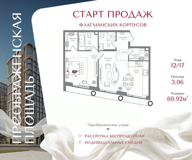 Угловая 4Е-квартира с мастер-спальней, лоджией и 2 санузлами — Линейная кухня аккуратно встроена в общую зону и оставляет больше свободы для семейного сценария — Угловая мастер-спальня на 2 окна и лоджия формируют приватный родительский блок — 2 санузла делают повседневную логистику большой семьи заметно удобнее — Ниша под шкаф у входа помогает держать квартиру визуально собранной Хорошая семейная квартира — спокойная, логичная и продуманная в самых важных деталях. О доме Клубный дом премиум-класса на 82 квартиры — формат приватного сообщества, где знают своих. — Потолки 3,15-3,7 м и квартиры с продуманными планировками — Отделка на выбор или свобода для собственного дизайна — Архитектура GAFA в духе современной европейской урбанистики Двор и инфраструктура Многоуровневый приватный двор-сад, который радует в любое время года. Более двадцати видов деревьев, кустарников и многолетников — от зеленокорого клёна и пурпурной ивы до гортензии "Анабель". Галерея первого этажа объединяет пространство в единый архитектурный ансамбль. Сервис уровня 5 Консьерж 24/7, валет-паркинг, сервис чистоты и полное инженерное сопровождение. Отдельный вход для курьеров. Инженерия и комфорт Индивидуальная вентиляция, бесшумные скоростные лифты, современные инженерные системы. Безопасность Закрытая территория, видеонаблюдение, патруль, группа быстрого реагирования и доступ по Face ID и BLE-меткам, распознавание номеров на въезде.