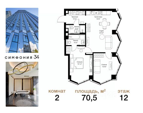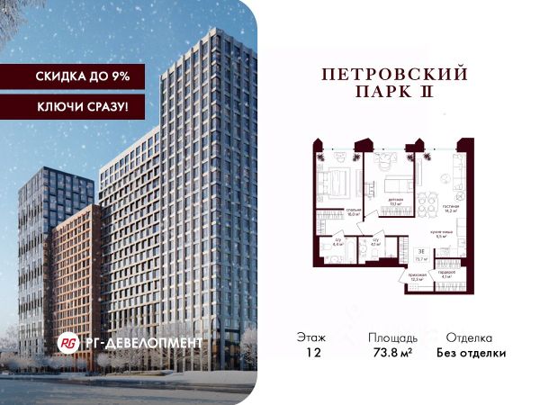 Дом сдан. Ключи в день покупки! В продаже 2-комнатная квартира площадью 60.50 м² с чистовой отделкой на 12 этаже 36 этажного дома в корпусе Сиена. ЖК Симфония 34 - концептуально новый жилой комплекс премиум-класса с подземной парковкой, состоит из четырех башен высотой 36 - 54 этажа. Квартиры сдаются с базовой (предчистовой) отделкой MR BASE или дизайнерской чистовой отделкой MR READY. Высота потолков 3 - 6 метров, окна высотой до 2,6 м. Более 100 кладовых в подземной части ЖК и более 500 на этажах. Безопасность - Система контроля входа на территорию комплекса, биометрия - Система автоматического водяного пожаротушения и противопожарного водопровода, система пожарной вентиляции - Доступ на парковку при помощи системы распознавания автомобильных номеров, карточка для контроля доступа резидентов - Система видеонаблюдения - Круглосуточная связь через приложение, телефон, голосовые сообщения с охраной, консьержем, call-центр. Расположение Пешком - 6 минут до метро "Дмитровская" - 15 минут до Тимирязевского парка На машине - 5 минут до Савеловского вокзала и Аэроэкспресса в Шереметьево - 10 минут до Москва-Сити и Садового кольца Благоустройство - 70% территории отведены под зеленые насаждения и ландшафтный дизайн - Приватный Японский сад - Детские площадки с зонированием по возрасту - Clubhouse для резидентов - Wellness & SPA - Зона для пикника, зона с гамаками - Центральное лобби, ресторан, коммерческие помещения - Дополнительный вход/выход на территорию комплекса Окружение - В 10 минутах от Симфония 34 находится дизайн-завод Flacon, где регулярно проходят культурно-образовательные и развлекательные мероприятия - Тимирязевский парк расположен в 850 м. Площадь парка 232 га - Рядом расположен парк "Дубки", площадью 16,5 га. - В 15 минутах расположен Хлебозавод 9. Здесь находятся шоурумы брендов, кафе разных кухонь мира, образовательные проекты и площадки для мероприятий Компания MR предлагает своим клиентам специальные условия приобретения квартир в рамках программ ипотечного кредитования от банков-партнеров.