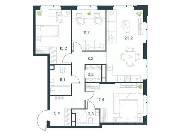 Цена указана с учётом скидки при 100%-й оплате, несубсидированной ипотеке, рассрочке (кроме программы "Рассрочка 0%"). Продается 3-комнатная квартира площадью 91.70 кв. м без отделки. Квартира находится на 12 этаже 20-этажного корпуса 3, в новом жилом комплексе бизнес-класса Level Войковская, расположенном рядом с живописным заповедником "Покровское-Стрешнево" (застройщик - компания Level Group/Левел групп). Прекрасная транспортная доступность - 7 мин. пешком до станции МЦК "Балтийская"; - 15 мин. пешком до станции метро "Войковская"; - 8 мин. на машине до ТТК; - 15 мин. на машине до центра Москвы; - 20 мин. на машине до Москва-Сити. Продуманный архитектурный проект - стильная архитектура от мастерской Фефелова В. В.; - панорамные виды на парки, Химкинское водохранилище и Останкинскую башню; - лобби с высотой потолков до 6,45 метров; - более 20 видов планировочных решений, включая редкие форматы квартир с террасой и увеличенной высотой потолков до 5,42 метров; - 2 варианта дизайнерской отделки в корпусе 4, предлагаются как дополнительная опция к отделке white box: стиль Modern в светлых холодных тонах и стиль Classic в нейтральной бежевой гамме. Квартиры в корпусах 3 и 5 сдаются без отделки. Расположение Level Войковская строится в престижном Северном округе Москвы. Развитая инфраструктура и живописная природа переплетаются в единый ансамбль, столь значимый для комфортной жизни. Войковский район окружают парки и набережные. В шаговой доступности - парк "Покровское-Стрешнево", не более 15-ти минут на велосипеде занимает путь до Тимирязевского парка и 9-ти минут до парка усадьбы Михалково. Рядом более 60 школ, 75 дошкольных учреждений, 17 государственных и 6 частных вузов, 25 супермаркетов, 4 торговых центра, среди которых ТЦ "Метрополис" и ТЦ "Авиапарк". Внутренняя инфраструктура На территории жилого комплекса предусмотрены коммерческие помещения: кафе, ресторан, пекарня и другие сервисы откроются на первых этажах корпусов. Для жителей будет доступен отапливаемый подземный паркинг на 244 машино-места с доступом с любого этажа на лифте. На территории паркинга будет расположено 125 кладовых помещений для хранения сезонного инвентаря. Лобби и благоустройство Дизайн лобби Level Войковская создан совместно с бюро BLANK. Это уютные гостиные, где хочется задержаться. Теплая цветовая гамма, ресепшен, зоны ожидания, лапомойки и гостевые санузлы - каждая деталь превращает лобби в комфортное продолжение вашего дома. 1,15 га площади в первых двух этапах строительства отведено под приватный внутренний двор, который спроектирован совместно с бюро "Правда". Детские площадки для всех возрастов, спортивные пространства для йоги, воркаута и петанка, уютные зоны для тихого отдыха или работы. Здесь утро начинается с вдохновения, а вечер наполнен приятными моментами. Лифты Комфортное перемещение внутри жилого комплекса будут обеспечивать надёжные лифты с доступом в паркинг с жилых этажей. В каждом корпусе предусмотрено по 3 грузопассажирских лифта.