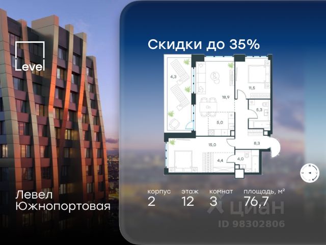 Предложение месяца от застройщика: - Скидка до 10% на ограниченный пул квартир - Рассрочка 0% на 1 год - Семейная ипотека без удорожания, ставка 4% - Ипотека для всех на весь срок, ставка 11,89% Продаётся 2-комнатная квартира от застройщика ГК "КОРТРОС" в жилом комплексе бизнес-класса УЛЬТИМА Сити. Квартира расположена на 12 этаже 52 этажного корпуса 2. Общая площадь 54,85 м². Без отделки. УЛЬТИМА Сити — жилой комплекс бизнес-класса в перспективном районе на юго-востоке Москвы. На его территории появятся 9 башен на 756 этажей, двухуровневый подземный паркинг, собственная инфраструктура, включая детский сад и школу. Всего девелопер благоустроит территорию в 2,6 га. Ближайшая станция метро — "Южный порт". Она откроется в 2028 году и будет находиться в 2-х минутах ходьбы. А прямо напротив расположится остановка водного автобуса-электрохода "Синичка". Дорога от квартала будет удобна и для автомобилистов: - до Кремля — 12 км - до МКАД — 12 км - до выезда на ТТК — 3 км - до Садового кольца — 8 км В двух корпусах первой очереди УЛЬТИМА Сити этажностью 45 и 52 реализуется 1 079 квартир с продуманными, рациональными планировочными решениями. В ассортиментной линейке представлены однокомнатные квартиры от 28,2 до 61 кв. м, двухкомнатные лоты от 44,3 до 95,4 кв. м, квартиры с тремя (71 — 115,57 кв. м) и четырьмя спальнями (106,6 — 114,97 кв. м). В экспозиции также есть квартиры с террасами, лоджиями, тремя и четырьмя санузлами, а также с функциональными нишами-кладовыми на кухнях. Запроектированы и эксклюзивные двухуровневые резиденции со вторым светом, в том числе с видом на Москву-реку, площадью от 77,7 до 141,9 кв. м. В рамках проекта запланировано строительство 9 корпусов, школы на 500 учащихся и детского сада на 225 мест. Еще будет создана продуманная инфраструктура для жителей: детские и спортивные площадки, амфитеатр для мероприятий, беседки и теплицы для садоводства, коворкинг, детский клуб и ресторан с открытой террасой. Доступ в жилой комплекс осуществляется по биометрическому контролю. Вокруг квартала будет приватная территория с видеонаблюдением и консьерж-сервисом 24/7. Лобби корпусов будут иметь двойные выходы: на улицу и во внутренний закрытый двор.
