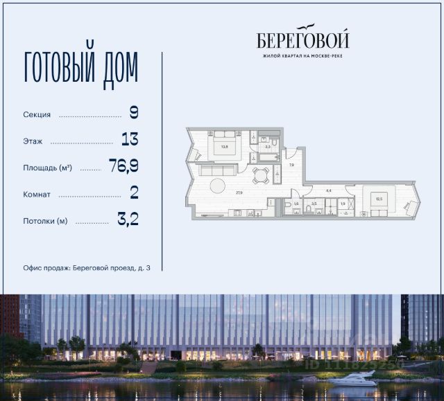 Река. Парк. Сити. Готовый дом в идеальном месте. Продается 1-комнатная квартира на 13 этаже с панорамным остеклением и видом на Береговой пр-д. Береговой — квартал-курорт в центре столицы. Готовый дом на первой линии Москвы-реки. Пешеходная набережная начинается прямо от дома — никаких дорог между вами и рекой. Уникальное сочетание природы парка Фили и ритма Сити. Ключи от нового образа жизни в Береговом: • 12 террас на крышах — ваши виды на Москву с высоты птичьего полета • Пешеходная набережная прямо у дома — ни одной машины между вами и рекой • Лобби с камином, переговорной и консьерж-сервисом • Флагманский Encore Fitness — самый большой в сети (4700 м²) с бассейном, термами и спа-комплексом • Детство на берегу Москвы-реки — в рамках проекта будут построены две школы и детский сад рядом с домом • Гастрономическая набережная: рестораны и премиум-сервисы откроются на первых этажах • Причал "Береговой" рядом с домом — путешествуйте по городу, пока другие стоят в пробках • Безопасность и уединение: контроль доступа на территорию, видеонаблюдение и круглосуточная диспетчерская • Двухуровневый подземный паркинг и кладовые Безупречная квартира для жизни: • Пространство света и воздуха: панорамные окна и высокие потолки 3.2 м • Технологии: центральное кондиционирование и роботизированная система очистки фасадов — вид из окна всегда будет идеальным • Совершенство планировки: просторная кухня-гостиная, минимум коридоров, максимум полезной площади • Квартира без отделки — возможность раскрыть преимущества планировки в вашем уникальном интерьере. Или выбирайте свою версию идеального дома в коллекции планировок: • С изолированными спальнями • Мастер-спальнями с гардеробными и ванными • Видовые ванные комнаты • Функциональные постирочные Эксклюзивные лоты: • Пентахусы с приватными террасами • Двухуровневые пентхаусы Локация, о которой мечтают 15 минут до Сити на машине — и вы в эпицентре деловой жизни. Две станции метро в пешей доступности — когда каждая минута на счету. Утром — пробежка по парку Фили, вечером — прогулка на велосипеде вдоль реки, выходные — водный спорт в Крылатском. Речные трамвайчики вместо такси, зеленые парки и благоприятная экология — привилегии престижного ЗАО Москвы. Условия покупки: выгодные программы покупки от застройщика, специальные условия при полной оплате. Оставляйте заявку на персональную презентацию в шоу-руме.