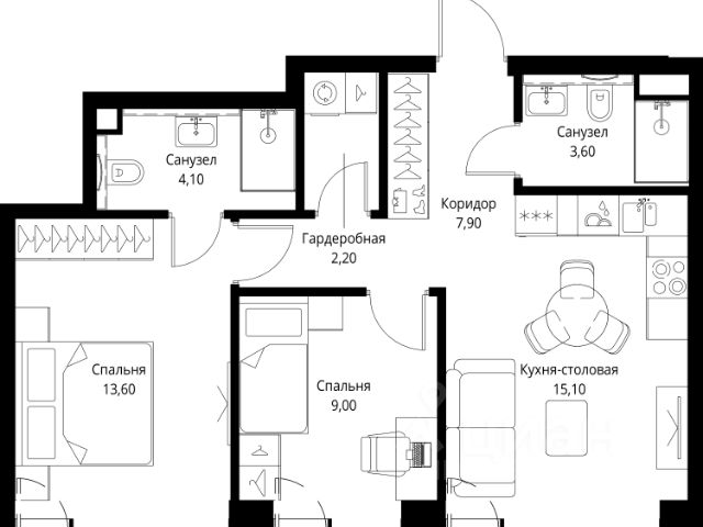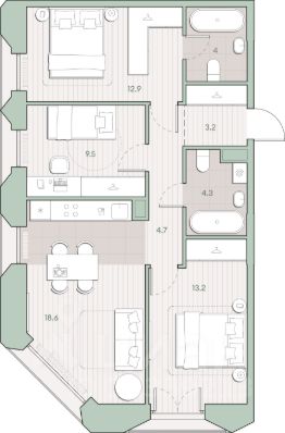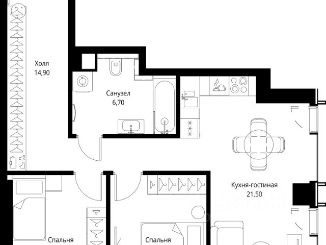 Прямая продажа от застройщика. Продаётся 2-комнатная квартира общей площадью 64.30 м² без отделки в ЖК VEER на 13-м этаже 59 этажного дома. Жилой комплекс бизнес-класса VEER от компании MR Group — это футуристичный мультиквартал, расположенный в престижной локации на западе Москвы. Благодаря переменной высоте башен — двух 22-этажных, 46-этажной и двух 59-этажных — возникает динамичность в силуэте комплекса, а его яркий образ вносит разноплановость в архитектурный пейзаж района. Расположение и транспортная доступность: • VEER удобно расположен в непосредственной близости от Кутузовского проспекта, обеспечивая быстрый доступ к центральным районам Москвы • Комплекс находится непосредственно напротив самого большого природного заказника в Москве - парка "Долина реки Сетунь", а за семь минут можно доехать до памятника садово-паркового искусства, Троекуровского леса. • Всего в 15 минутах - центр города, самая престижная бизнес-школа управления России "Сколково", дом творчества "Переделкино". Инфраструктура: Разнообразить свой день резиденты VEER смогут также проводя больше времени на свежем воздухе. Двор разделен на 4 зоны разных эмоций и действий, которые пересечены и соединены веерными прогулочными маршрутами: • Спортивная площадка устроена в глубине "Кленовой рощи" • В "Чайном домике" будет создан навес с утеплением для отдыха в любую погоду • Площадки для детей воплотятся в "Волшебный лес" с цветами, зеркалами и световым дизайном • "Центральная площадь" устроена у водного оазиса живописного пруда. Компания MR Group предлагает своим клиентам специальные условия приобретения квартир в рамках программ ипотечного кредитования от банков-партнеров.