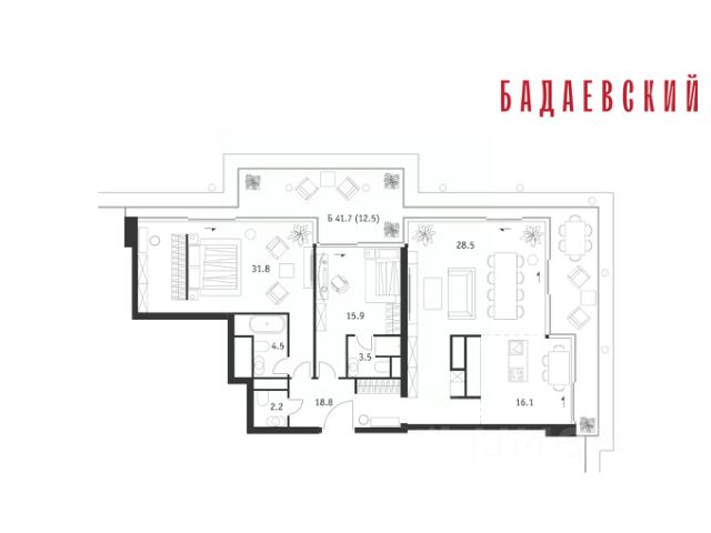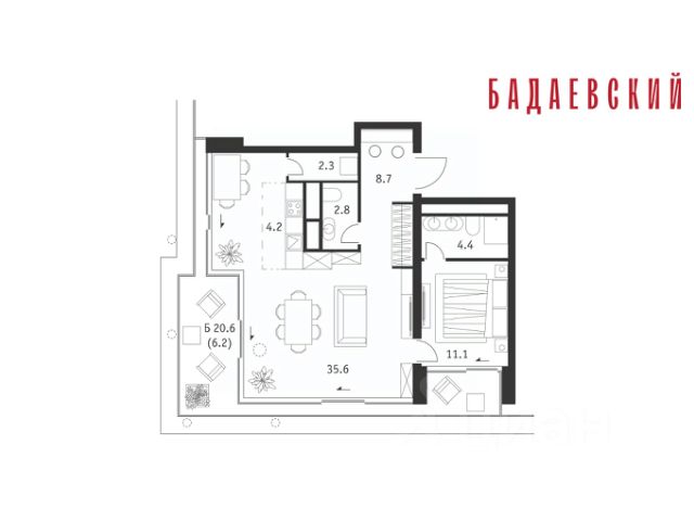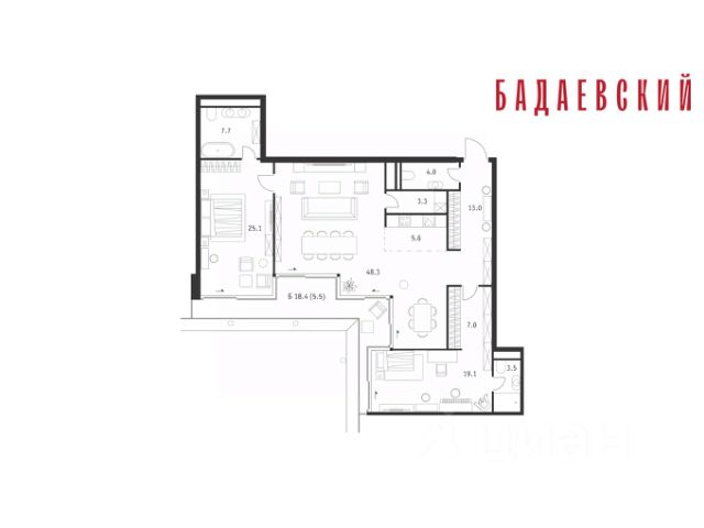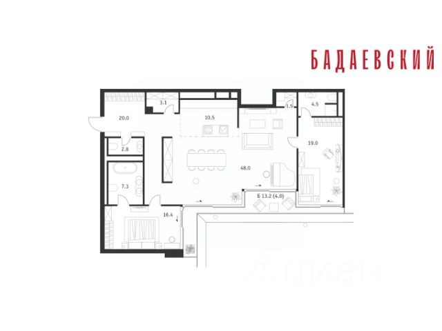 Продаётся 2-комнатная квартира общей площадью 139.70 м² на 13 этаже Жилого Комплекса Бадаевский. О нем говорили. Его ждали. Жилой комплекс "Бадаевский" на Кутузовском проспекте — это место для жизни, которое займет место в истории. Комплекс стал первым в истории московским проектом, победившим в категории Residential на World Architecture Festival. Девелопер Capital Group. В "Бадаевском" исторические здания завода и футуристические "парящие" дома создают единый комплекс, который станет новой достопримечательностью и символом Москвы. Панорамное остекление, террасы и веранды дарят неординарные и захватывающие виды. Благодаря расположению домов и панорамному остеклению, жилые пространства в "Бадаевском" будут наполнены светом. А виды из окон домов-"лент" на Москву-реку, пивоваренный завод, небоскребы "Москва-Сити" и Белый дом дополнены принципиально новым ощущением высоты. На территории Бадаевского завода появится масштабный ландшафтный парк с концепцией "русский лес". Впервые в истории района Дорогомилово у жителей появится прямая связь набережной Тараса Шевченко с Кутузовским проспектом. Близость Москвы-реки добавляет к преимуществам "Бадаевского" природную энергетику и приятные прогулки на свежем воздухе. Подземная парковка позволит сделать территорию завода полностью пешеходной, а сам комплекс представит новый подход к организации открытого и уединенного пространства в центре Москвы. Расположение в начале Кутузовского проспекта делает проект не только престижным, но и удобным: до Третьего транспортного и Садового кольца можно доехать за 5 минут, а Кремль и основные исторические достопримечательности расположены в 15 минутах на автомобиле. Напротив "Бадаевского" находится офисный кластер "Москва-Сити". Для жителей комплекс будет создано не только новое масштабное благоустройство, но и вся необходимая инфраструктура. В исторических корпусах появятся магазины, бутики, кафе и рестораны, коворкинг и крафтовая пивоварня, а в зданиях элеваторов — русская баня. Кроме того, запланирован фермерский рынок и досуговый кластер с музыкальной студией, центром детского творчества и фитнес-центром с бассейном.