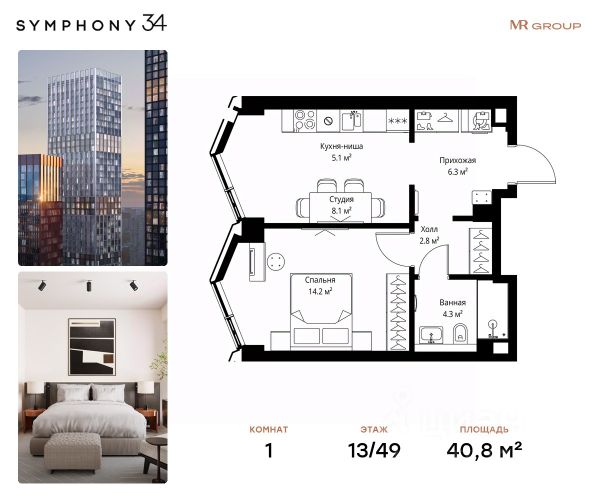 Дом сдан. Ключи в день покупки! В продаже 1-комнатная квартира площадью 40.20 м² с чистовой отделкой на 13 этаже 36 этажного дома в корпусе Сиена. ЖК Симфония 34 - концептуально новый жилой комплекс премиум-класса с подземной парковкой, состоит из четырех башен высотой 36 - 54 этажа. Квартиры сдаются с дизайнерской чистовой отделкой MR READY с встроенными кухнями и премиальной техникой. Приобретение квартиры с чистовой отделкой позволяет избежать лишних хлопот, ведь включает в себя установку мебели и бытовой техники на кухне, что является дополнительным бонусом. Высота потолков 3 - 6 метров, окна высотой до 2,6 м. Более 100 кладовых в подземной части ЖК и более 500 на этажах. Безопасность - Система контроля входа на территорию комплекса, биометрия - Система автоматического водяного пожаротушения и противопожарного водопровода, система пожарной вентиляции - Доступ на парковку при помощи системы распознавания автомобильных номеров, карточка для контроля доступа резидентов - Система видеонаблюдения - Круглосуточная связь через приложение, телефон, голосовые сообщения с охраной, консьержем, call-центр Расположение Пешком - 6 минут до метро "Дмитровская" - 15 минут до Тимирязевского парка На машине - 5 минут до Савеловского вокзала и Аэроэкспресса в Шереметьево - 10 минут до Москва-Сити и Садового кольца Благоустройство - 70% территории отведены под зеленые насаждения и ландшафтный дизайн - Приватный Японский сад - Детские площадки с зонированием по возрасту - Clubhouse для резидентов - Wellness & SPA - Зона для пикника, зона с гамаками - Центральное лобби, ресторан, коммерческие помещения - Дополнительный вход/выход на территорию комплекса Окружение - В 10 минутах от Symphony 34 находится дизайн-завод Flacon, где регулярно проходят культурно-образовательные и развлекательные мероприятия - Тимирязевский парк расположен в 850 м. Площадь парка 232 га - Рядом расположен парк "Дубки", площадью 16,5 га - В 15 минутах расположен Хлебозавод 9. Здесь находятся шоурумы брендов, кафе разных кухонь мира, образовательные проекты и площадки для мероприятий