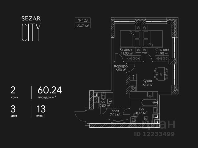 10 минут от Москва-Сити В продаже квартира площадью 60.22 м² без отделки на 13 этаже 46 этажного дома. Квартира расположена в корпусе Leo. JOIS это премиальный жилой комплекс от девелопера MR в районе Хорошёво-Мнёвники. Он включает несколько эффектных небоскрёбов высотой 47-56 этажей, эксклюзивные форматы квартир с панорамным остеклением, подземный двухуровневый паркинг на 239 м/м, собственную приватную инфраструктуру, закрытый ландшафтный парк 2,3 Га с функциональным зонированием и охраняемой территорией. Над проектом работали лучшие команды международных агентств с многолетним опытом: Genpro, S&P, iLight International и другие. Расположение Пешком: - 5 мин. ст. МЦК "Хорошёво"; - 15 мин. ст. м. "Народное ополчение"; - 10 мин. ст. метро "Звенигородская" с 2027 года; - 20 мин. причал "Карамышевский". На автомобиле: - 3 мин. до Звенигородского шоссе; - 5 мин. до ТТК: - 8 мин. до Серебряного бора и Строгинского затона - 10 мин. до ММДЦ "Москва-Сити"; - 40 мин. до аэропорта "Шереметьево"; Благоустройство - собственный ландшафтный парк 2,3 Га; - парк скульптур от Cosmoscow; - консьерж-сервис 24/7; - сервисный лифт и вход; - игровые и спортивные площадки; - коворкинг с библиотекой; - лаунж-зона с камином; - игровые комнаты для детей и клуб для подростков с оборудованием для видеоигр; - спортивная студия для индивидуальных тренировок; - гостиная с мини-кухней; - зоны для выгула собак; - подогрев пешеходных дорожек в зимний период; - автополив зелёных насаждений; - премиальные рестораны, кафе, химчистки, аптеки и супермаркеты. Окружение - 4 парка: Покровское-Стрешнево, Филёвский парк, Серебряный бор и Берёзовая роща; - 15 общеобразовательных заведений, в том числе две школы из самых лучших в Москве: государственная школа "Интеграл" и частная "Хорошкола"; - спортивное сооружение "ВЭБ Арена", домашний стадион ФК ЦСКА; - крупнейший в Европе торгово-развлекательный центр "Авиапарк".