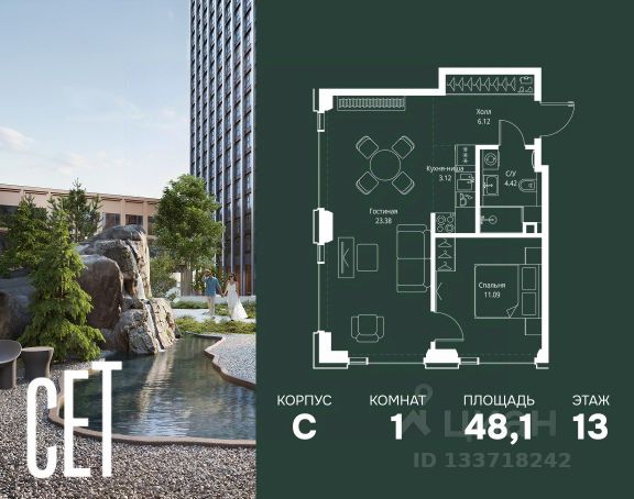 Прямая продажа от застройщика. Продаётся 1-комнатная квартира общей площадью 53.30 м² с предчистовой отделкой в ЖК Веер на 13-м этаже 59 этажного дома. Жилой комплекс бизнес-класса Веер от компании MR — это футуристичный мультиквартал, расположенный в престижной локации на западе Москвы. Благодаря переменной высоте башен — двух 22-этажных, 46-этажной и двух 59-этажных — возникает динамичность в силуэте комплекса, а его яркий образ вносит разноплановость в архитектурный пейзаж района. Расположение и транспортная доступность: • Веер удобно расположен в непосредственной близости от Кутузовского проспекта, обеспечивая быстрый доступ к центральным районам Москвы • Комплекс находится непосредственно напротив самого большого природного заказника в Москве - парка "Долина реки Сетунь", а за семь минут можно доехать до памятника садово-паркового искусства, Троекуровского леса. • Всего в 15 минутах - центр города, самая престижная бизнес-школа управления России "Сколково", дом творчества "Переделкино". Инфраструктура: Разнообразить свой день резиденты Веер смогут также проводя больше времени на свежем воздухе. Двор разделен на 4 зоны разных эмоций и действий, которые пересечены и соединены веерными прогулочными маршрутами: • Спортивная площадка устроена в глубине "Кленовой рощи" • В "Чайном домике" будет создан навес с утеплением для отдыха в любую погоду • Площадки для детей воплотятся в "Волшебный лес" с цветами, зеркалами и световым дизайном • "Центральная площадь" устроена у водного оазиса живописного пруда. Компания MR предлагает своим клиентам специальные условия приобретения квартир в рамках программ ипотечного кредитования от банков-партнеров.