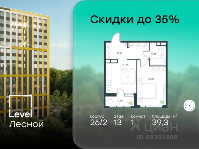 В районе, утопающем в густой зелени лесов, многочисленных парков и скверов, продаётся 3-комнатная квартира площадью 64.90 кв.м с отделкой white box. Квартира расположена на 13 этаже в жилом комплексе комфорт-класса Level Лесной (компания Level Group/Левел групп).