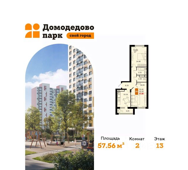 Продается двухкомнатная квартира в жилом комплексе комфорт класса "Домодедово парк" площадью 56.61 кв.м на 13 этаже 17 этажного дома. КВАРТИРЫ: • Улучшенные планировочные решения гарантируют обилие света •Свободная планировка для реализации ваших дизайн-проектов •Высота потолков в чистоте 2,72 м •Двухкамерные стеклопакеты для сбережения тепла в холодное время года ТРАНСПОРТНАЯ ДОСТУПНОСТЬ: •3 шоссе (М4 Дон бесплатный участок, Каширское, Симферопольское) для вас и вашего авто •39 минут до центра Москвы на электропоезде •Ж/Д станция в пешей доступности •5 остановок электропоезда в Москве вы больше не привязаны к вокзалу, выбирайте удобную ветку метро •Скоростная линия МЦД сможете добираться еще быстрее •Остановка маршрутного такси на территории жилого комплекса ХОЛЛЫ: •Помещения для колясок и велосипедов на первых этажах сберегут место на вашей лоджии •Витражное остекление от пола до потолка, потому что дом начинается с холла в нем тоже должно быть красиво и уютно •Высота потолков 3,3 м здесь вас не покидает ощущение простора и воздуха •Пол отделан плиткой Kerama Marazzi, известной своим высоким качеством ДОМА: •Основной материал монолитный железобетон, имеющий преимущества над другими материалами •Выразительные фасады, облицованные керамогранитными плитами жизнерадостного цвета, делают архитектуру привлекательной •Подвесные корзины для кондиционеров для оперативного монтажа и упрощенного обслуживания климатической техники •Собственные коммуникации как часть автономного комфорта ИНФРАСТРУКТУРА: •Детский сад и школа уже работают ваши дети будут учиться рядом с домом •В 2026 году будут сданы еще 2 детских сада чтобы вы тратили всего 5 минут на то, чтобы отвести ребенка в сад •Вторая школа уже на этапе проектирования, потому что мы понимаем, что одной школы мало •Действующий терапевтический и стоматологический кабинеты для поддержания здоровья •Продуктовые магазины, аптеки, кофейни уже открыты - все самое необходимое расположено всего лишь в нескольких шагах •В 12 корпусе откроется супермаркет это удобно ЭКОЛОГИЯ И ПРИРОДА: •Экологически благоприятное окружение это важно •Чистый воздух дышите полной грудью •Обустроенная набережная реки Пахры рядом с домом для пробежек, прогулок и отдыха с семьей и друзьями О застройщике: Под руководством и при участии ГК "Град" построены объекты общей площадью более 600 тыс. кв. м, в том числе клубные форматы и квартиры бизнес-класса. Застройщик известен высоким качеством строительства и отделки и точными сроками сдачи проектов. В 2020 году ГК "Град" стал единственным застройщиком Московской области, получившим Золотой знак "Надежный застройщик России 2020".