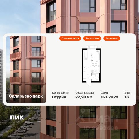 Продаётся 2-комн. квартира площадью 51,6 кв.м на 13 этаже 16 этажного дома (Корпус 57.1, Секция 1) проекта ПИК Саларьево парк. Светлый просторный подъезд на уровне земли, функциональная планировка, большие окна, предчистовая отделка. Жилой район "Саларьево парк" расположен в Новой Москве, в четырёх километрах от МКАД по Киевскому шоссе. Две станции метро: "Саларьево" и "Филатов луг", — находятся в пешей доступности от проекта. Дойти до них можно за 510 минут. В квартале уже создана качественная среда, где есть абсолютно всё для полноценной жизни, работы и отдыха. Благодаря удобному расположению проекта всё важное будет рядом: детские сады, школы, кафе и рестораны, шопинг в торговых центрах, фитнес и даже аэропорт. Все корпуса в квартале гармонично сочетаются, образуя единую городскую среду. Между собой их объединяет невысокая этажность и натуральная цветовая гамма. Здесь приятно гулять и проводить время на улице всей семьёй. В "Саларьево парке" создана уникальная образовательная среда, включающая в себя шесть школ, рассчитанных на 6 250 учеников. Две из них уже открыты, их посещает 2 300 детей. Также на территории "Саларьево парка" находится 12 детских садов, один из которых с бассейном. Сейчас уже открыты 7 садов. В "Саларьево парке" открыта уникальная игровая площадка — PlayHub "Оригами". Здесь есть ручей, горка-труба и рельефные холмы. Взрослые смогут отдохнуть в уютном кафе, пока дети играют. Также на территории проекта есть SportHub — большая спортивная зона, разделённая по интересам и возрастам. Здесь можно заниматься разными видами спорта: футболом, баскетболом, волейболом и стритболом. Зимой центральную часть площадки превращают в каток. Во дворах-парках жилого квартала есть места для отдыха, детские и спортивные площадки. На первых этажах домов расположены магазины, кафе и полезные сервисы. Также вблизи проекта есть несколько масштабных торговых центров. До ТЦ "Саларис" пять минут пешком, до "Рио", Metro Cash & Carry и "Леруа Мерлен" — пять минут на автомобиле. Артикул 1019127 (Застройщик ООО "Специализированный Застройщик "Тирон")