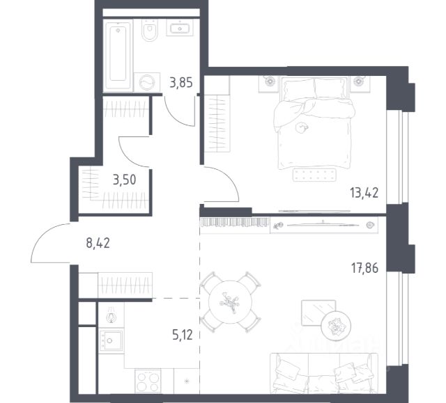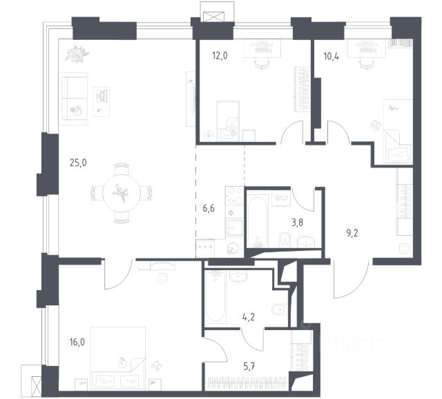 О квартире Продаётся студия общей площадью 25.12 кв. м. с отделкой на выбор: черновая, White Box. Квартира на 13 этаже корпуса 5 в жилом комплексе бизнес-класса "Среда на Кутузовском". До метро "Кунцевская" 10 минут пешком. Исторический зелёный район "Среда на Кутузовском" строится в Кунцево - историческом и экологически чистом районе Москвы. Здесь нет крупных производств, много лесных массивов и роза ветров, которая обеспечивает приток чистого воздуха. Район наполнен жизнью и уже развит: много детских садов и школ, поликлиники, магазины, кафе, спортивные объекты, парки. - 10 минут пешком до станции метро "Кунцевская". - 5-8 минут на машине до Кутузовского проспекта и Можайского шоссе и 10-15 минут до Рублёвского и МКАД. - 15 минут езды до Крылатских холмов, Суворовского парка и заказника "Долина реки Сетунь". Акции и спецпредложения - Выгода 12%: если внести 100% оплату или оформить семейную ипотеку под 6%. Действует до 13 апреля. - Низкие ставки по ипотеке: 0,1% в первый год или 0,11% в первые два года кредита. - Трейд-ин от "Среды": можно обменять свою текущую квартиру на новую. - Ипотека для семей с детьми: если ребёнку до 7 лет, предлагаем льготную ставку 3,5% О жилом комплексе "Среда на Кутузовском" - новый квартал с башнями от 12 до 44 этажей, окружённый лесными массивами и историческими усадьбами старой Москвы. Во внутреннем дворе есть водоём, многоуровневые зоны с детскими и спортивными площадками, коворкинг на свежем воздухе и локации для уединённого отдыха. Особенности - Архитектура с многослойными фасадами. - Квартиры с террасами и мастер-спальнями. - Окна в пол на всех этажах. - Общественные лаунж-гостиные. - Собственный ландшафтный парк во дворе. - Зоны барбекю и площадки для отдыха у воды. - Умный подземный паркинг. - Стрит-ритейл на первых этажах.