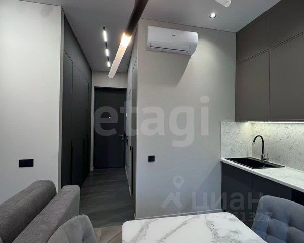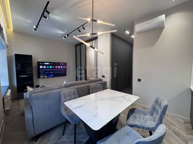 Теплые полы в зоне санузла, кухни, коридора и лоджии. Современный телевизор-зеркало, разворачивающиеся светильники. Различные сценарии освещения. Вместительная кухонная мебель, много мест для хранения.