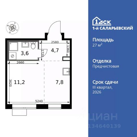 Прямая продажа от застройщика! Жилой Комплекс класса Комфорт+. Продаётся квартира-студия номер 474 общей площадью 27.3 кв.м. на 13-м этаже 24 этажного здания. Отделка Whitebox. Цена с учётом скидки. Особенности квартиры: - Линейная планировка - максимальная функциональность и удобство. - Увеличенное количество окон - дополнительное освещение и свежий воздух. - Можно оборудовать рабочее место - комфорт для работы и учёбы. - Линейная кухня - функциональность и практичность в одном решении. - Ниша под шкаф - компактное и удобное место для вещей. Квартира с предчистовой отделкой (White box). Вам не придется заниматься черновыми и трудоёмкими работы, а чистовую отделку и дизайн - сделайте на свой вкус. Информация о комплексе: Весь микрорайон спроектирован в концепции "без машин". Пейзаж не портят припаркованные автомобили, а родители могут не опасаться за перемещение детей по всему кварталу. Территория комплекса - царство пешеходов. А что делать, если Вы или Вам подвезли чтото габаритное? Проблему решают сквозные подъезды, открывающие доступ в здание с внешней стороны комплекса. Проезд к домам организован по внешнему контуру микрорайона. Места для автомобилей отведены на 7 этажах наземного паркинга и в подземном паркинге 6-го корпуса. За порядком и безопасностью зорко следит множество камер. Безбарьерная среда облегчает передвижение по территории молодых родителей с колясками, маленьких детей и жильцов с ограниченными возможностями. Транспортная доступность: "1-й Саларьевский" расположен в Новой Москве всего в 2 км от МКАД и 5 минутах ходьбы от метро Саларьево. Если Вы за рулем, для Вас удобный выезд на скоростное Киевское шоссе. Передвигаетесь не на автомобиле? Станция метро Саларьево и автовокзал в пешей доступности. У метро находится один из крупнейших ТЦ Новой Москвы "Саларис". Это значит, что всевозможные покупки и разнообразные развлечения для всей семьи тоже рядом. Личный автотранспорт: До Киевского шоссе - 0,2 км До МКАД - 2,4 км До Калужского шоссе - 5 км До Ленинского проспекта - 3,2 км Общественный транспорт: До станции метро "Саларьево" - 7 мин пешком До остановок наземного транспорта - 5-10 мин пешком До Ленинского проспекта на автобусе - 10 мин Внутренняя инфраструктура: Во дворе царит атмосфера легкого беззаботного настроения. По сторонам расположились любимые местными жителями магазинчики, где можно купить товары первой необходимости, кафе, где приятно посидеть с друзьями, и кофе-пойнты. На бульваре можно посмотреть уличную выставку, поиграть с соседями в шахматы и покачаться на световых качелях. Дети растут быстро, и вот уже возникает вопрос садика. На территории есть свой современный садик на 225 мест. Из садика ребенок плавно переходит в свою же муниципальную школу, рассчитанную на 450 мест. Построенная по индивидуальному проекту, она соответствует эстетической и дружелюбной концепции ЖК. Комплекс соседствует с районом, где присутствует уже сложившаяся и развитая инфраструктура.
