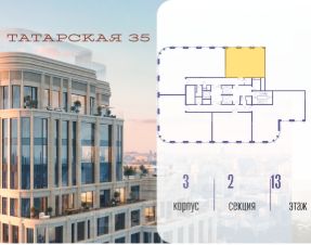 ТАТАРСКАЯ, 35 - новая архитектурная доминанта Замоскворечья, достопримечательность на фотопанорамах исторического центра Москвы. Элитный дом, созданный для тех, кто умеет смотреть далеко вперед, мыслить масштабно и воплощать собственный сценарий жизни.