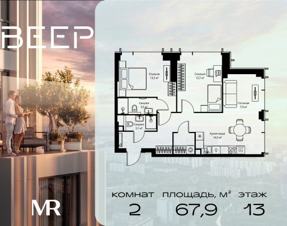 Прямая продажа от застройщика. В ЖК Сет продается 3-комнатная квартира площадью 80.70 м², расположенная в корпусе 2, на 13 этаже 59 этажного дома. Сет имеет стратегически выгодное расположение в ЗАО, в районе с большой историей и блестящим будущим: между природной зоной долины реки Сетунь и Кутузовским проспектом. В рамках возведения первой очереди предусмотрено три корпуса высотой 18, 45 и 59 этажей. На верхних этажах спроектированы общедоступные смотровые площадки с панорамным обзором на центр столицы. Преимущества проекта: • Функциональные планировочные решения • Контроль проникновения через входную дверь • Система управления освещением и температурой в квартире • Система защиты от протечек с функцией перекрытия воды • Вход в подъезд по биометрическим считывателям Face ID • Скоростные лифты • Двухуровневый подземный охраняемый паркинг на 495 машино-мест Застройка Сет включает в себя не только жилые корпуса, но и инфраструктурные объекты. Все необходимое для повседневного комфорта будет расположено в шаговой доступности: • Фитнес-Клуб с бассейном • Ведущая городская школа, детский сад и школа искусств • Центр культуры и досуга • Медицинский центр • Кафе и рестораны Расположение комплекса: Пешком: • Метро "Давыдково" - 17 минут • Парк "Долина реки Сетунь" - 3 минуты • Открытие новых станций метро в шаговой доступности в будущем Инфраструктура: Разнообразить свой день резиденты Веер смогут также проводя больше времени на свежем воздухе. Двор разделен на 4 зоны разных эмоций и действий, которые пересечены и соединены веерными прогулочными маршрутами: • Спортивная площадка устроена в глубине "Кленовой рощи" • В "Чайном домике" будет создан навес с утеплением для отдыха в любую погоду • Площадки для детей воплотятся в "Волшебный лес" с цветами, зеркалами и световым дизайном • "Центральная площадь" устроена у водного оазиса живописного пруда. На машине: • "Москва-Сити" - 15 минут • Садовое кольцо - 20 минут • ТЦ "Океания" - 8 минут • ТЦ "Времена года" - 13 минут • Сколково - 12 минут • Гребной канал - 17 минут Компания MR предлагает своим клиентам специальные условия приобретения квартир в рамках программ ипотечного кредитования от банков-партнеров.