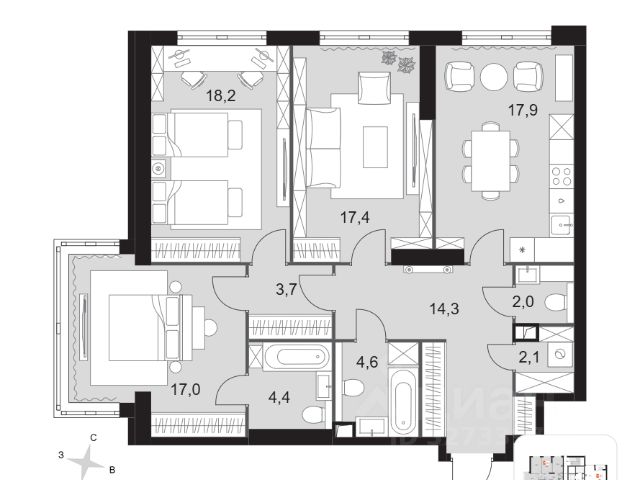 В продаже 2-спальная квартира с мастер-спальней, просторной кухней-гостиной, дополнительным гостевым санузлом и вместительной гардеробной. Дополнительные преимущества - панорамное остекление и вид на закрытый благоустроенный двор жилого комплекса. Квартира с 2 спальнями - прекрасный выбор для семей с 1-2 детьми, а также отличное инвестиционное решение для тех, кто планирует сдавать жилье в аренду. Жилой комплекс бизнес+ класса СТОУН Грэйн находится на Юго-Западе Москвы в Обручевском районе. Расположение вблизи двух станций метро и ключевых транспортных магистралей обеспечивает быстрый доступ к центру столицы и соседним районам: - 2 мин. до м. "Калужская" и "Воронцовская" - Удобный выезд на ул. Обручева и ул. Профсоюзную - 2,5 км до Ленинского проспекта - 6 км до ТТК и МКАД - 10 км до Садового кольца и Рублёвского шоссе - 30 мин. на автомобиле до "Москва-Сити", Лужников и МГУ Проект расположен в районе с развитой образовательной и социальной базой. Рядом с жилым комплексом находятся ведущие вузы Москвы, лучшие детские сады и школы. Среди других особенностей - зеленое окружение, близость к Воронцовскому парку. Проект отличает выверенная архитектура от Kleinewelt Architekten. Башня А высотой в 45 этажей станет архитектурной доминантой с выразительными поясами балконов галерейного типа и эксклюзивными лотами со вторым светом. Камерная 20-этажная башня Б со скатной крышей будет включать двухуровневые квартиры с террасами. На закрытой благоустроенной территории разместятся игровые площадки для детей разных возрастов, workout-зона, павильоны для работы на открытом воздухе. Жители также смогут воспользоваться дополнительными зонами отдыха и инфраструктурой на территории, прилегающей к офисному кварталу класса А STONE Калужская. Комфортный микроклимат в квартирах обеспечивают современные инженерные решения. Для удобства жителей предусмотрен двухуровневый подземный паркинг на 270 машиномест. STONE - девелопер коммерческой и жилой недвижимости классов бизнес и премиум в Москве с 19-летним опытом. Сегодня занимает лидирующую позицию на офисном рынке (рейтинг РБК). В портфеле девелопера представлено 3 млн кв. м построенных, строящихся и проектируемых объектов, из которых более 1 млн кв. м находятся в стадии строительства. Компания имеет самый масштабный проектный портфель офисной недвижимости класса А на московском рынке (данные NF Group) и возглавляет топ устойчивых девелоперов, согласно исследованию FResearch - Forbes. В настоящий момент девелопером представлено 16 бизнес-центров класса А, а также 3 жилых комплекса бизнес+ класса. ID.28812
