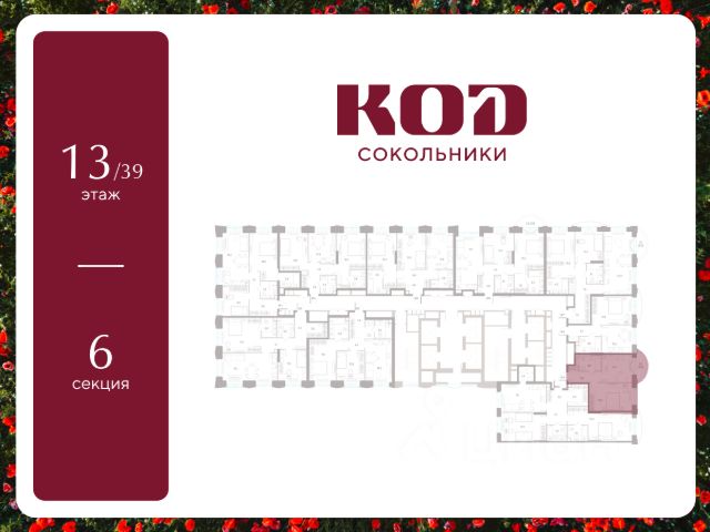 В семейном жилом квартале, расположенном в окружении более 500 га леса и объектов исторического наследия, продается 2-комнатная квартира площадью 61.1 кв. м без отделки. Квартира расположена на 13 этаже 39-этажного корпуса 2.2 жилого квартала бизнес-класса КОД Сокольники от девелопера Новая Эра. Отличная транспортная доступность - 3 мин. пешком до станции МЦД-3 "Митьково"; - 7 мин. пешком до станции метро "Сокольники"; - Удобный выезд на Русаковскую улицу; - 5 мин. на авто до ТТК; - 15 мин. на авто до Садового кольца. Продуманный архитектурный проект - Выразительная архитектура, созданная бюро "Остоженка"; - 70% квартир в квартале - видовые, что позволяет ежедневно наслаждаться панорамами на парк Сокольники, Останкинскую телебашню, исторический центр и Алексеевский монастырь; - 30% квартир - угловые. Увеличенные оконные проемы, панорамное остекление и продуманное расположение комнат усиливают эффект обзорности: гостиные и спальни получают максимум дневного света и живописные виды, которые становятся частью интерьера; - Высокие потолки от 3 метров в типовых планировках; - Дизайнерские лобби от модной студии 211.Studio; - Двухуровневый паркинг с подогреваемой рампой и пологим заездом, подходящим даже для спорткаров; Расположение Семейный жилой квартал КОД Сокольники - это дома бизнес-класса в престижном районе Сокольники. Район отличает хорошая транспортная доступность: несколько минут пешком до станции метро "Сокольники" и платформы МЦД-3 ("Митьково"), регулярные трамвайные и автобусные маршруты, удобный выезд на Русаковскую улицу и Третье транспортное кольцо. До Садового кольца можно доехать за 15 минут. Для пешеходов и велосипедистов в парковой зоне будут оборудованы широкие тротуары и велодорожки, обеспечивая комфортные условия для активного образа жизни. Внутренняя инфраструктура Резидентам будет доступна развитая клубная инфраструктура: собственный фитнес-рум, коворкинг с панорамным видом на парк, игровая комната для детей, пространства для мастер-классов и просторная гостиная, которую можно использовать для отдыха, просмотра кино или проведения мероприятий. На первых этажах жилых домов разместятся объекты стрит-ритейла: кафе, рестораны, магазины и различные сервисы - от аптек и салонов красоты до ателье и барбершопов. Рядом с жилыми корпусами появится деловой квартал с офисами и торговыми площадями на 75 тысяч кв. м, что делает проект привлекательным для тех, кто ценит возможность жить и работать поблизости. Благоустройство Центральным элементом квартала станет благоустроенный двор-парк площадью 3 га с собственным прудом и зелеными зонами для прогулок и отдыха. В границах двора предусмотрены современные игровые и спортивные площадки: мультифункциональная зона воркаута, площадки для волейбола и стритбола, площадки для пилатеса и йоги, скалодром, а также беговые и веломаршруты. В состав проекта войдет образовательный центр, включающий детский сад для 350 малышей, а также школу на 650 учеников.