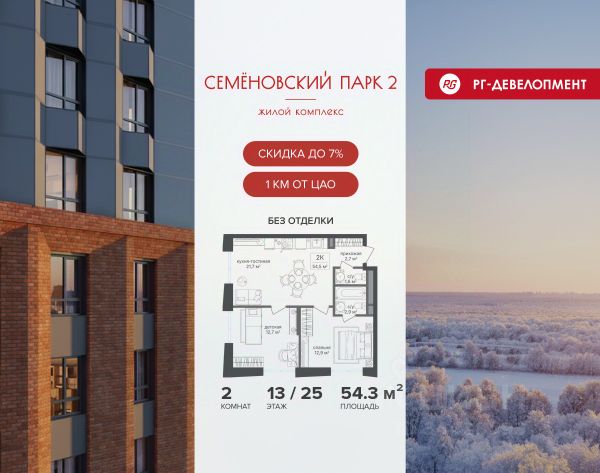 Ипотека для каждого! Полная стоимость кредита от 12,378% до 18,537%. Ставка от 0,11% в АО "Альфа-Банк", ген. лицензия ЦБ РФ 1326 от 16.01.2015. Ставка фиксируется на первые 12 месяцев, далее полная стоимость кредита от 22,025% до 24,935% ставка 21,59%. Первоначальный взнос — от 20,1% от стоимости квартиры. Срок кредитования — от 4 до 30 лет. Ипотека на весь срок! Полная стоимость кредита от 23,396% до 26,058% со ставкой 14,5%! Первоначальный взнос —от 20,01% от стоимости квартиры. Срок кредитования — от 3 до 30 лет. АО "Банк ДОМ.РФ" универсальная лицензия Банка России 2312 от 19.12.2018. Скидка 7% при покупке квартиры! Цена указана с учетом максимального размера скидки. Продается 2-к квартира 65,3 кв.м. в ЖК "Семеновский парк 2" на 13-м этаже 25 этажного дома. Компания "РГ-Девелопмент" предоставляет скидку на квартиры в жилом комплексе. Акция действительна до 28.02.2026 включительно. Чтобы воспользоваться предложением, необходимо подписать договор на приобретение недвижимости до 28.02.2026 включительно. Компания "РГ-Девелопмент" вошла в ТОП-10 девелоперов по объёму введённого жилья в "Старой Москве" по итогам 2025 года. Прямая продажа от застройщика! Квартиры без отделки. Срок сдачи корпуса - 1 кв. 2026 г. ЖК "Семеновский парк 2" - это идеальное место для того, чтобы стать вашим домом. Проект расположен в исторической части Москвы вблизи Измайловского лесопарка, в 1 км от ЦАО. 4 станции метро отделяют вас от Красной площади и 15 минут на автомобиле - от Садового кольца.