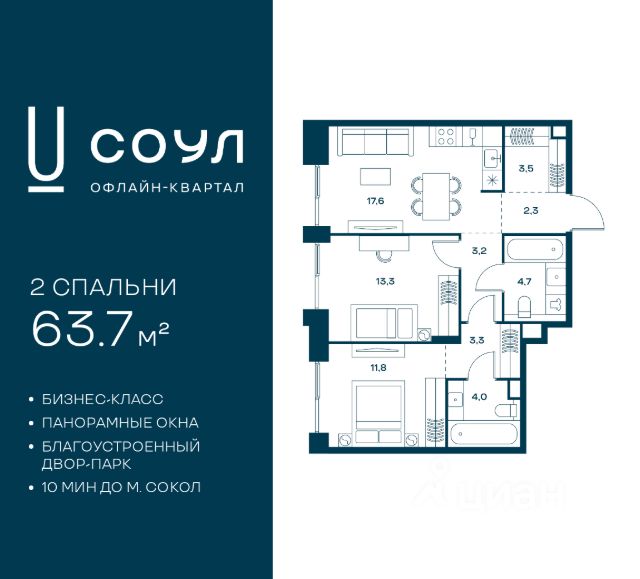 Цены указаны с условием 100% оплаты и стандартной ипотеки. Прямая продажа от застройщика! Продается 2-к. квартира номер 510 общей площадью 69 кв.м. на 14-м этаже 18 этажного дома, Корпус 8. Без отделки. Проект бизнес-класса СОУЛ от девелопера FORMA. До метро Сокол 10 мин пешком. Архитектура от британского бюро SimpsonHaugh. Благоустройство дворов — Gillespies и GAFA. Территория состоит из культурного парка и приватных дворов. Озеленение в эстетике лесного оазиса. Насыщенное благоустройство: прогулочные тропинки, релакс-зоны, пряный и сенсорный сады, развивающие детские площадки и воркауты. В центре проекта объект культурного наследия — общественное пространство Изофабрика, построенная в 30-х годах по проекту архитектора Георгия Гольца. Здесь будут располагаться мастерские для взрослых и детей, выставочные залы, коворкинги, образовательный центр, рестораны и кафе. Квартиры с панорамными окнами, мастер-спальнями, гардеробными, классическими балконами и лоджиями, видовыми террасами. Высота потолков от 2,9 до 3,5 м. В проекте 2 детских сада на 100 и 200 малышей. Клубная гостиная, фитнес-рум, детская игровая комната, дизайнерские лобби, подземный паркинг и келлеры.
