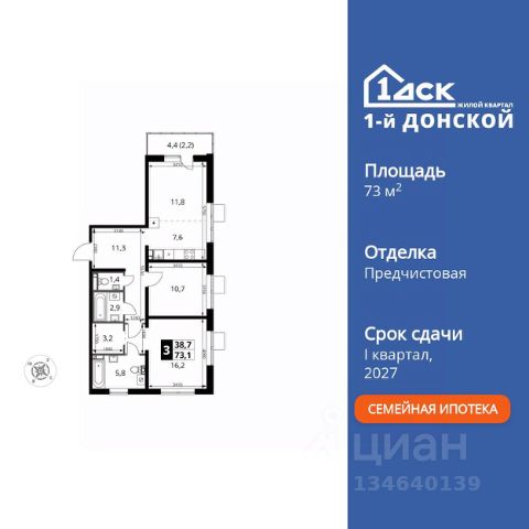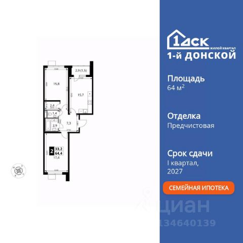 Прямая продажа от застройщика! Жилой Комплекс класса Комфорт Плюс. Продаётся 3-к квартира номер 811 общей площадью 66.1 кв.м. на 14-м этаже 24 этажного здания. Отделка Whitebox. Особенности квартиры: - МЦД-5 в пешей доступности - Квартал с собственной набережной - Свои 2 детских сада и школа - Просторная спальня, в которой можно разместить большую кровать. - Угловая планировка - больше пространства для ваших идей. - Раздельный санузел - больше удобства для всех членов семьи. - Евроформат - просторное и удобное жилье с отличной планировкой. - Кухня-гостиная - идеальное пространство для встреч с близкими. - Лоджия - уютное место для отдыха и тишины. Квартира с предчистовой отделкой (White box). Вам не придется заниматься черновыми и трудоёмкими работы, а чистовую отделку и дизайн - сделайте на свой вкус. Информация о комплексе: Комплекс 1-й Донской расположен в 7 км от МКАД по трассе М-4 Дон. В нем сочетаются все плюсы комфортной городской среды и природного окружения. В проекте достаточно большой процент квартир, выходящих на 2-3 стороны света. Секции-маяки формируют у зданий визуальную L-форму, что придает застройке структуру и ритмику объемов. На ощущение динамики работает и разная этажность зданий. Теплая цветовая палитра фасадов отражает природу Дона. Вечерами дома преображаются благодаря архитектурной подсветке, выгодно выделяясь на городском фоне. Природа оказывает положительное влияние на человека на всех уровнях восприятия: через зрение, запахи, звуки, тактильные ощущения. Неподалеку от ЖК Первый Донской: Ермолинский парк, Видновский лесопарк, Жуковский парк Транспортная доступность: Комплекс удобно расположен в 7 км от МКАД по трассе М-4 Дон (через Видное). Расстояние до Каширского шоссе составляет 12 км. Добраться до метро и центра Москвы позволяет развитая сеть маршрутов общественного наземного транспорта. Действующая ж/д станция Калинина Павелецкого направления в 15-17 минутах ходьбы (МЦД-5 в 2025-2026 гг). Внутренняя инфраструктура: Проект 1-й Донской соседствует с бурно развивающимся районом, основная инфраструктура которого уже сложилась. В строительстве современных жилых комплексов в округе есть свои плюсы: здесь формируется продуманная и комфортная городская среда. Что касается внутренней инфраструктуры, на территории квартала будут расположены собственные муниципальные 2 детских садика и школа, которые помогут совместить приятное с полезным. Территория комплекса пронизана целой сетью живописных пешеходных маршрутов, позволяющих попасть в любой уголок района. Основные пути, как водится, "торговые". Они проходят вдоль магазинов, кафе и других представителей коммерции и отделяются от проезжей части зеленой "фито" - стеной. Среди крупных социальных объектов предусмотрены своя поликлиника и торговый центр с примыкающей площадью для общественных мероприятий. Уют начинается с продуманного подъезда. Сквозные подъезды наполнены светом благодаря сплошному остеклению. Вход в них есть и с улицы, и