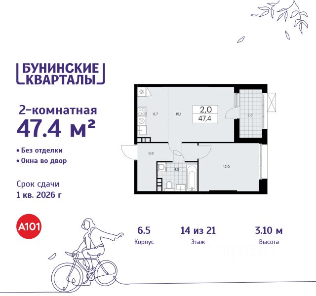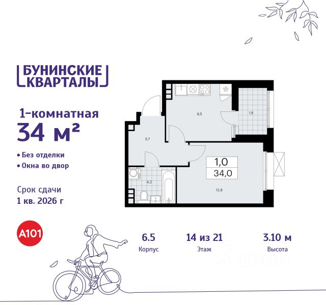 Продается однокомнатная квартира 528 в новостройке ЖК "Бунинские кварталы" по адресу Москва, ТиНАО, Новомосковский АО, Сосенское С/П, жилой комплекс Бунинские Кварталы, 6.5, район Коммунарка, Новомосковский административный округ, Москва. Общая площадь квартиры - 34.00 кв. м., этаж 14 из 21, секция 8. Тип проекта, по которому построен дом - монолит, компания-застройщик - ООО "А101". Стоимость квартиры - 13967200 Р. Срок сдачи - 1 квартал 2026. ПРЕДЛОЖЕНИЯ ОТ ЗАСТРОЙЩИКА В ФЕВРАЛЕ 2026: Скидки до 10% на все квартиры. Только в офисах продаж до 28 февраля. Ипотека от 13,9 % для всех! На весь срок. "Семейная ипотека" вернулась. Ставка от 3,5 % на весь срок! Без удорожания! Выгодное ипотечное комбо: Ипотека от 2200 р./мес. и от 6 % после рождения ребёнка! Ипотека для всех "Держи пять!" - ставка 5 % на 2 года! *более подробную информацию по скидкам и акциям уточняйте в отделе продаж ЖК "Бунинские кварталы" строится на юго-западе Москвы. Монолитные дома в лаконичной стилистике гармонируют с живописной природой. Из любой точки района удобно добираться до природных объектов, ключевых транспортных узлов, крупных торговых, спортивных, деловых и медицинских центров. Концепция уникального благоустройства района - "Выходи гулять!". Здесь появятся эстрада для районных творческих мероприятий, спортивные и игровые площадки, скейт-парк, дружелюбные пространства для домашних питомцев, благоустроенная набережная Ивановского пруда. В районе формируется собственная развитая инфраструктура: современные школа на 1100 мест и 2 детских сада на 540 малышей, магазины у дома и сетевые супермаркеты, фитнес, кафе, салоны, детские развивающие центры. Крытый каток "Самолёт Арена" - в 10 минутах пешком. За 15 минут можно дойти до действующей станции метро "Потапово". Предусмотрены удобные автомобильные выезды на проспект Куприна и улицу Александры Монаховой. Особенности "Бунинских кварталов": - ст. метро "Потапово" - 15 минут пешком - своя школа и детские сады - безопасные дворы без машин с системой контроля доступа - насыщенная инфраструктура - в шаговой доступности и на первых этажах домов