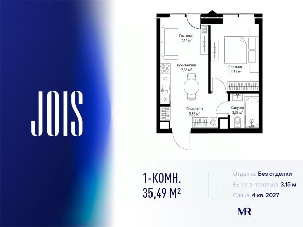 10 минут от Москва-Сити В продаже квартира площадью 22.67 м² с предчистовой отделкой на 14 этаже 55 этажного дома. Квартира расположена в корпусе Anna. JOIS это премиальный жилой комплекс от девелопера MR в районе Хорошёво-Мнёвники. Он включает несколько эффектных небоскрёбов высотой 47-56 этажей, эксклюзивные форматы квартир с панорамным остеклением, подземный двухуровневый паркинг на 239 м/м, собственную приватную инфраструктуру, закрытый ландшафтный парк 2,3 Га с функциональным зонированием и охраняемой территорией. Над проектом работали лучшие команды международных агентств с многолетним опытом: Genpro, S&P, iLight International и другие. Расположение Пешком: - 5 мин. ст. МЦК "Хорошёво"; - 15 мин. ст. м. "Народное ополчение"; - 10 мин. ст. метро "Звенигородская" с 2027 года; - 20 мин. причал "Карамышевский". На автомобиле: - 3 мин. до Звенигородского шоссе; - 5 мин. до ТТК: - 8 мин. до Серебряного бора и Строгинского затона - 10 мин. до ММДЦ "Москва-Сити"; - 40 мин. до аэропорта "Шереметьево"; Благоустройство - собственный ландшафтный парк 2,3 Га; - парк скульптур от Cosmoscow; - консьерж-сервис 24/7; - сервисный лифт и вход; - игровые и спортивные площадки; - коворкинг с библиотекой; - лаунж-зона с камином; - игровые комнаты для детей и клуб для подростков с оборудованием для видеоигр; - спортивная студия для индивидуальных тренировок; - гостиная с мини-кухней; - зоны для выгула собак; - подогрев пешеходных дорожек в зимний период; - автополив зелёных насаждений; - премиальные рестораны, кафе, химчистки, аптеки и супермаркеты. Окружение - 4 парка: Покровское-Стрешнево, Филёвский парк, Серебряный бор и Берёзовая роща; - 15 общеобразовательных заведений, в том числе две школы из самых лучших в Москве: государственная школа "Интеграл" и частная "Хорошкола"; - спортивное сооружение "ВЭБ Арена", домашний стадион ФК ЦСКА; - крупнейший в Европе торгово-развлекательный центр "Авиапарк".