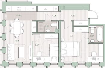 Продается простороная пятикомнатная квартира евроформата площадью 109,3 м² в корпусе "Созидание" клубного дома "Кутузов Сити". Функциональная планировка квартиры идеально подойдёт для семьи. В квартире четыре изолированные комнаты, одна из которых — мастер-спальня с ванной комнатой и отдельным помещением, которое можно адаптировать под гардеробную или небольшой кабинет. Просторная кухня-гостиная станет идеальным местом для семейных ужинов и приёма гостей. В общей сложности, в квартире предусмотрено три санузла. Одно из этих помещений можно адаптировать под прачечную. В просторной прихожей предусмотрено место для хранения и отдельная кладовая. Окна наполняют комнаты естественным светом и делают солнце частью интерьера. Высокие потолки придают пространству ощущение свободы и лёгкости. Продуманная планировка позволяет эффективно использовать каждый квадратный метр. О проекте: "Кутузов Сити" — клубный дом на 220 квартир, разработанный совместно с бюро Atrium и Oleg Klodt Architecture & Design. Проект строится в престижном Западном административном округе Москвы, всего в нескольких минутах ходьбы от Кутузовского проспекта. Закрытая территория, приватный двор, подземный паркинг и стильные лобби создают атмосферу комфорта и безопасности. В двух шагах от дома находится крупнейшая природная территория Москвы — природный заказник "Долина реки Сетунь". Камерная застройка и развитая инфраструктура делают "Кутузов Сити" отличным выбором для тех, кто ценит качество жизни и близость к природе. (Лот: 161)