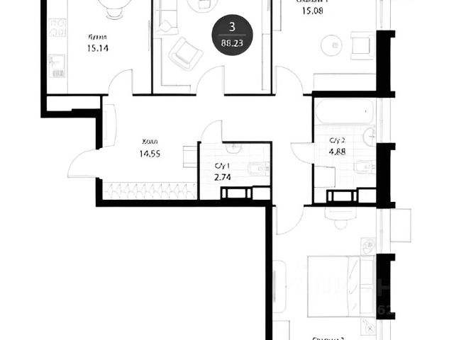 Общая площадь апартаментов с учетом лоджии 92 кв.м.Прекрасный вариант для семьи с детьми, или тех, кто любит простор и комфорт.Интересно то,что нет в этом районе новых домов из монолита ,такого класса,нет конкуренции для ЖК Нормандия.