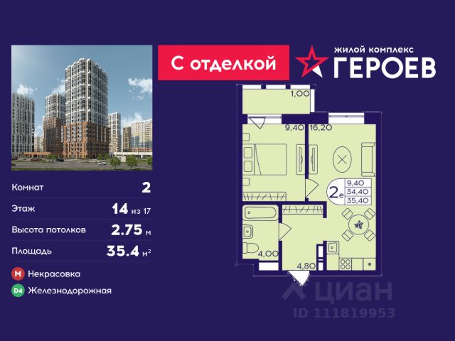 Продаётся 3-комнатная квартира 54.8 кв. м. в жилом комплексе "Героев" в Балашихе, Железнодорожный. Квартира расположена на 14 этаже 411 корпуса. Все квартиры представлены с чистовой отделкой. Вам не нужно тратить время и дополнительные финансы на ремонт или жить в шуме строительных работ - достаточно перевести свои вещи, расставить мебель и всё готово! Жилой квартал "Героев" - это уютный проект для семей с детьми. Всего 40 минут до центра Москвы. В квартале созданы все условия для досуга всех возрастов: игровые и спортивные площадки, места для отдыха и прогулок, магазины, кафе и пункты выдачи. За 15 минут можно дойти от дома до Ольгинского лесопарка - популярного места для прогулок и отдыха на свежем воздухе. Здесь приятно гулять всей семьёй, заниматься спортом или устроить пикник в выходной день. Преимущества: Квартира с готовой отделкой. Пространство полностью подготовлено для жизни: не нужно тратить время и деньги на ремонт или ждать его окончания. После получения ключей достаточно расставить мебель - и можно сразу заезжать и жить. Продуманные и светлые планировки. Просторные кухни-гостиные создают комфортное пространство для отдыха и встреч с близкими. В квартирах предусмотрены удобные гардеробные, благодаря чему легко поддерживать порядок и не перегружать комнаты шкафами. Увеличенное остекление. Большие окна наполняют квартиру естественным светом в течение всего дня, создавая ощущение простора и уюта, а также визуально расширяя пространство и делая интерьер более воздушным. Пешая доступность до станции Железнодорожная (МЦД-4) - дорога займёт не более 30 минут до центра Москвы: станции метро "Курская", "Площадь Ильича" или ТПУ Нижегородская.