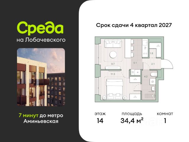 О квартире Продаётся трехкомнатная квартира общей площадью 110.70 кв. м. с отделкой на выбор: черновая, White Box. Квартира на 14 этаже корпуса 5.5 в жилом комплексе бизнес-класса "Среда на Лобачевского". До метро "Аминьевская" 7 минут пешком. Развитый район с удобным выездом "Среда на Лобачевского" строится рядом с Аминьевским и Очаковским шоссе, отсюда можно доехать до МКАД или Ленинского проспекта за 10 минут. В районе уже есть всё для жизни: рестораны, кофейни, торговые центры, поликлиники и спортивные комплексы, школы и сады, бульвары и парки. - 7 минут ходьбы до станции метро "Аминьевская". - 15 минут пешком до станции МЦД-4 "Очаково". - 8-15 минут на машине до Кутузовского проспекта и ТТК. - До 15 минут езды до заказников "Долина реки Сетунь" и "Воробьёвы горы". Акции и спецпредложения - Выгода 12%: если внести 100% оплату или оформить семейную ипотеку под 6%. Действует до 13 апреля. - Низкие ставки по ипотеке: 0,1% в первый год или 0,11% в первые два года кредита. - Трейд-ин от "Среды": можно обменять свою текущую квартиру на новую. - Ипотека для семей с детьми: если ребёнку до 7 лет, предлагаем льготную ставку 3,5% О жилом комплексе "Среда на Лобачевского" - новый квартал в парадном стиле старой Москвы. Благодаря разноэтажной застройке во дворе комплекса будет много света и воздуха, без ощущения замкнутого пространства. Во дворе лаунж-зоны для медитации и работы, площадки для игр и кинопоказов, а на первых этажах - кофейни и магазины. Особенности - Высота потолков до 3,24 метра. - Панорамное остекление в пол. - Квартиры с террасами, мастер-спальнями и сквозными планировками. - Дизайнерские гранд-лобби в каждом корпусе. - Ландшафтный парк с зонами отдыха у воды. - Коворкинг на свежем воздухе. - Локации для спорта, игр и приватного отдыха. - Соседский бульвар с площадкой для подростков. - Подземный паркинг с двумя въездами. - Система бесключевого доступа. - Стрит-ритейл на первых этажах.
