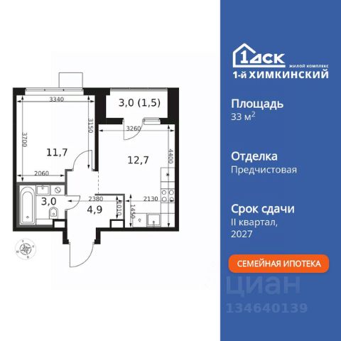 БЕЗ ПЕРВОНАЧАЛЬНОГО ВЗНОСА! • ИПОТЕКА 10% ДЛЯ ВСЕХ БЕЗ НАЦЕНОК • ДОСТУПНО ПО СЕМЕЙНОЙ ИПОТЕКЕ Прямая продажа от застройщика! Жилой Комплекс класса Комфорт. Продаётся квартира-студия номер 178 общей площадью 23.5 кв.м. на 14-м этаже 17 этажного здания. Отделка Whitebox. Цена с учётом скидки. Особенности квартиры: - Линейная планировка - максимальная функциональность и удобство. - Увеличенное количество окон - дополнительное освещение и свежий воздух. - Линейная кухня - функциональность и практичность в одном решении. - Ниша под шкаф - компактное и удобное место для вещей. Квартира с предчистовой отделкой (White box). Вам не придется заниматься черновыми и трудоёмкими работы, а чистовую отделку и дизайн - сделайте на свой вкус. Информация о комплексе: Квартал класса комфорт плюс, где современное городское пространство граничит с удивительной природой вокруг. 1-й Химкинский расположен на территории в 102 га и органично вписан в природное окружение Химкинского леса и канала им. Москвы. В проекте предусмотрена богатая коммерческая инфраструктура с собственным торговым центром, общеобразовательные учреждения и социальные объекты. Изюминкой жилого комплекса будут спортивно-оздоровительный комплекс с термами и SPA и семейный парк развлечений. Транспортная доступность: ЖК "1-й Химкинский" дает возможность выбрать любой способ передвижения как до города, так и до самых разных объектов, которые могут представлять интерес для его жителей. Не важно, какой способ передвижения вы предпочитаете, успевать всегда и везде можно вне зависимости от выбора транспорта. - 8 мин. пешком (800 м) до остановки "Золотая Арка" -10 мин пешком (1 км) до остановки "Поворот на Ивакино" Внутренняя инфраструктура: - Безопасность: закрытые дворы без машин, безбарьерная среда и сквозные подъезды, камеры на детских площадках с возможностью трансляции на смартфоне - Идеальный отдых в кругу семьи: семейный парк развлечений на территории, торговый центр (2-х этажный) общей площадью более 8 тыс. кв. м с фудкортом - Образование: 3 детских сада и современная муниципальная школа на 2450 мест - Спортивная среда: закольцованный веломаршрут с навигацией, спортивный комплекс с термами, закрытый тренажерный зал и зоны ворк-аута - Социальные объекты: поликлиника со станцией скорой помощи, пожарное депо - Подземный паркинг и кладовые помещения на -1 этаже, станция техобслуживания и автомойка на территории