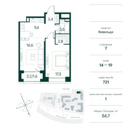 Продаётся 2-комнатная квартира 55.9 м². В жилом районе Алиа на 14-м этаже 28-этажного дома. Жилой район Алиа — это дома бизнес-класса у слияния Москвы-реки и Сходни. Алиа находится в Покровском-Стрешневе, экологически чистом районе на престижном северо-западе столицы. Район возводится на бывшей территории Тушинского аэрополя, где никогда не было промышленного производства. Алиа — это район разностороннего развития, спроектированный по принципу WORK.LIVE.PLAY.LEARN. Это "15-минутный город", где вся необходимая для комфортной жизни инфраструктура — на расстоянии приятной прогулки. У района удобное расположение: отсюда меньше 10 минут пешком до станций метро "Спартак" и "Тушинская" и всего полчаса на автомобиле до центра города или аэропорта Шереметьево. Архитектурную концепцию Алиа разработало бюро SOM (Skidmore, Owings & Merrill), авторы знаменитой "Бурдж-Халифа". В Алиа больше 140 планировочных решений, среди которых — редкие для Москвы форматы: квартиры с окном в ванной, пентхаус, сити-юниты и таунхаусы. Почти половина территории района отдана под благоустройство. В Алиа три парка: Линейный парк с кафе и магазинами, Центральный парк с амфитеатром, сухим фонтаном и большим плейхабом для детей всех возрастов и Прибрежный парк на собственной набережной, одной из самых длинных в Москве. В каждом урбан-блоке — закрытый внутренний двор с гипоаллергенными растениями и детской площадкой. В лобби каждого жилого корпуса в Алиа оборудована зона ожидания, колясочная, гостевой санузел и лапомойка для домашних животных. За стойкой ресепшена резидентов и их гостей встречает консьерж. Центральное лобби урбан-блока — это стильное общественное пространство с коворкингом, лаундж-зоной и кофе-пойнтом. Это "вторая гостиная" жителей урбан-блока и одно из мест, где формируется комьюнити Алиа. Два ключевых объекта инфраструктуры в Алиа — это спорткомплекс "Чкалов Арена", где представлены 25 видов спорта, и самый большой в стране бизнес-парк класса A, благодаря которому району обеспечено быстрое развитие.