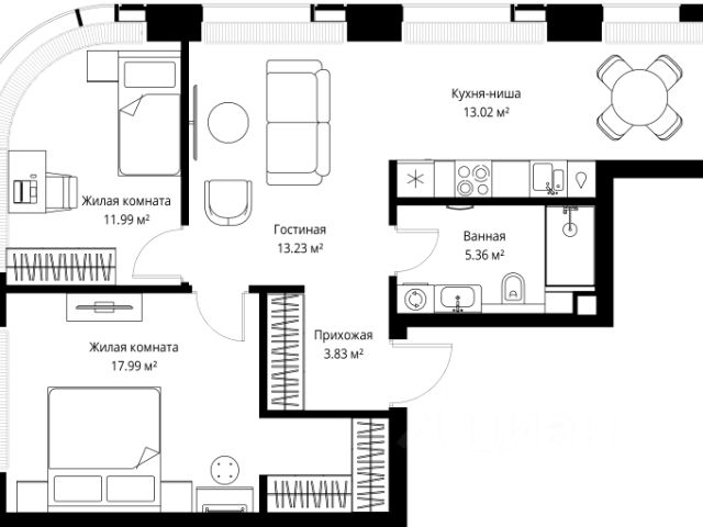 Старт продаж новой очереди! Продаётся 2-комнатная квартира общей площадью 60.35 м² без отделки в ЖК Веер на 14-м этаже 70 этажного дома. Веер.2 — вторая очередь футуристичного квартала бизнес-класса Веер. Это новая экосистема в престижном Западном округе Москвы, поражающая масштабностью внутренней инфраструктуры. ЖК находится всего в 5 минутах от Кутузовского проспекта и в 15 минутах от Сколково. Ансамбль из четырех стеклянных башен с доминантой в 237 метров разработан по принципу современного урбанизма и выражен в лаконичных объемах — параллелепипедах со сглаженными углами, которые придают зданиям утонченный вид. Расположение и транспортная доступность: • Образовательный комплекс в составе топовой школы, состоящий из двух зданий: основное на 1500 школьных и 450 дошкольных мест, отдельное здание детского сада на 300 мест. • Парк "Долина реки Сетунь" площадью более 700 гектаров • Рядом МГУ, МГИМО, РАНХиГС и Академия ФСБ • 15 минут по Кутузовскому проспекту до ужина в центре с видом на Москву-реку • 18 минут пешком до м. "Давыдково" • Открытие новых станций метро в шаговой доступности в будущем Инфраструктура: Двор в Веер.2 — это ассиметричные холмы, каменные "лабиринты", зеленые ковры и хвойные островки с единой живой экосистемой. Здесь есть все: • Павильон умиротворения Место отдыха под навесом в спокойной части двора, окруженное деревьями. • Активная тропа Тактильная дорога из камней разного диаметра для расслабляющих прогулок. • Бизнес-гарден Оборудованное пространство для работы на свежем воздухе со столом и встроенными розетками. • Детская площадка Двухуровневая площадка "Ботаника" с песочницей, переговорной трубой и горкой "Дружба". Компания MR предлагает своим клиентам специальные условия приобретения квартир в рамках программ ипотечного кредитования от банков-партнеров.